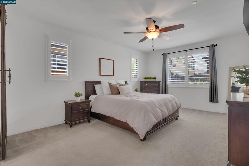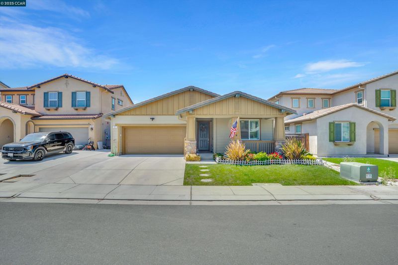 ONE OF THE LOWEST PRICED IN EMERSON RANCH! NO HOA! This well-maintained single-story home is move-in ready and has it all! Built just 8 years ago, the home offers 3 bedrooms, 2.5 bathrooms, and a spacious open floor plan designed for modern living. Enjoy plantation shutters, upgraded laminate flooring, and plenty of natural light throughout home. The kitchen features an oversized island with bar seating, stainless steel appliances, a gas stove, and abundant cabinet space - perfect for cooking and gathering. The primary suite is a true retreat with dual walk-in closets, a custom barn door, and a spa-like bathroom with dual vanities and a soaking tub. Step outside to enjoy outdoor living in the low-maintenance backyard, or take a stroll to Emerson Ranch Park, the baseball diamond, and picnic areas just minutes away. Added benefits include owned solar for energy efficiency and cost savings, plus no HOA! This home perfectly blends comfort, style, and convenience in one of Oakley’s most desirable neighborhoods. Beyond the community, Oakley continues to grow with exciting developments like the upcoming Shops at Laurel Fields and the future 55-acre Oakley Regional Park, bringing even more recreation and convenience right to your doorstep.