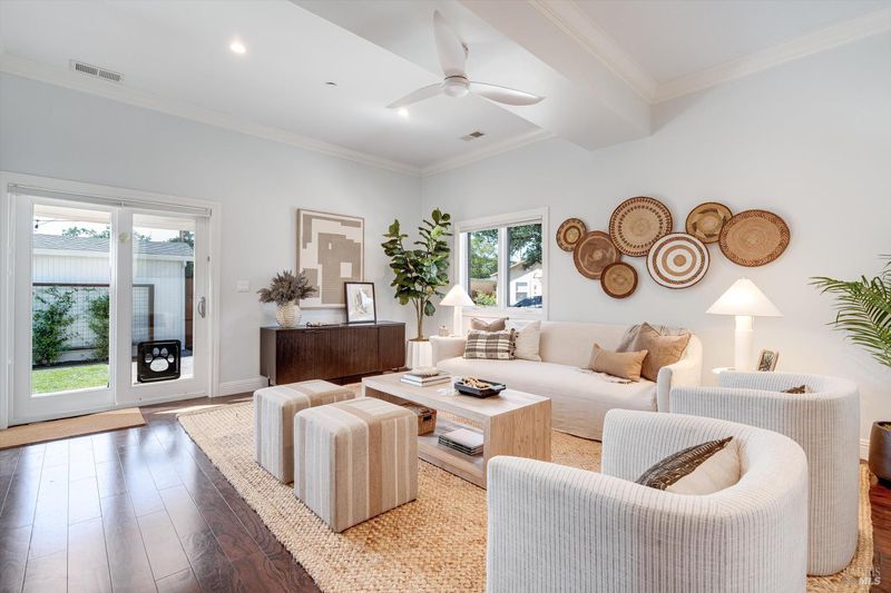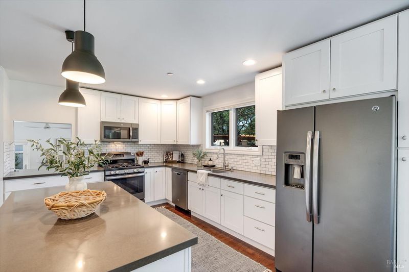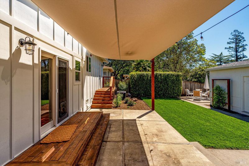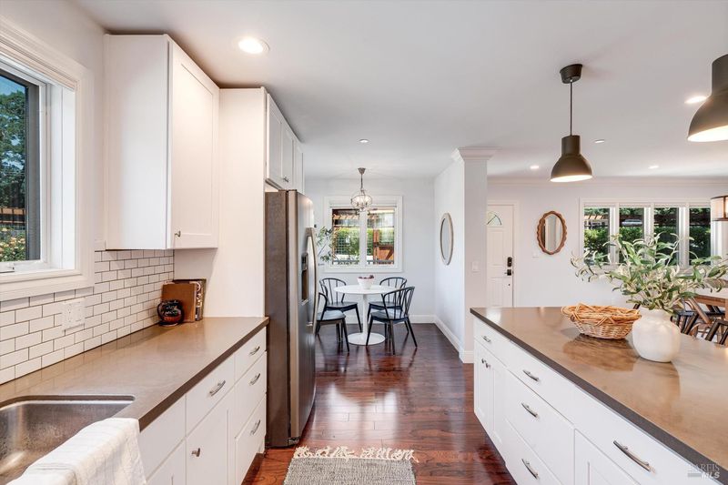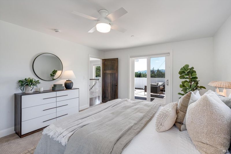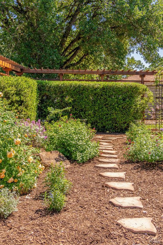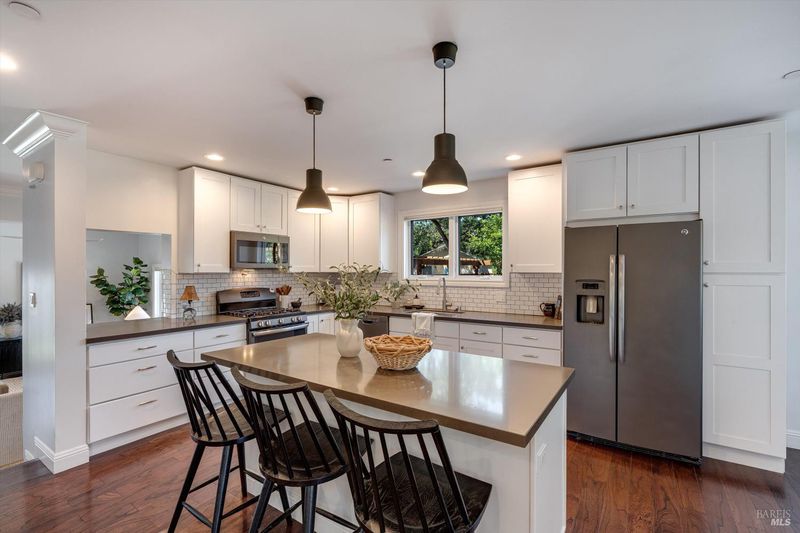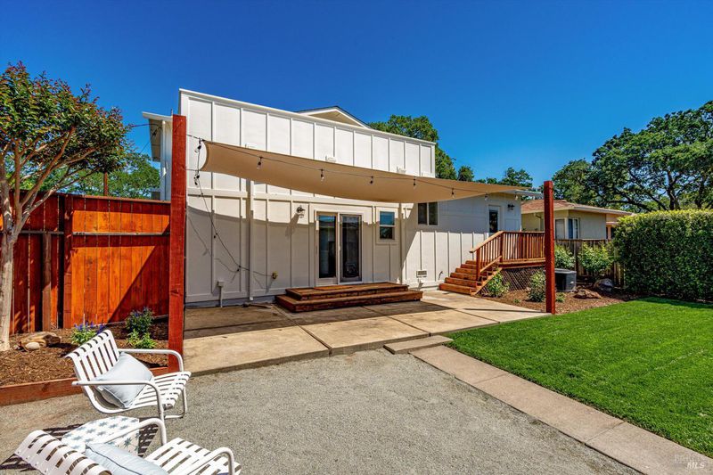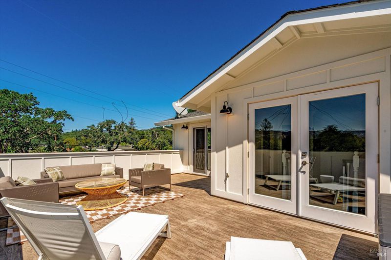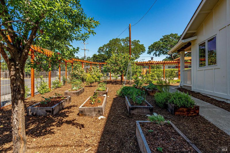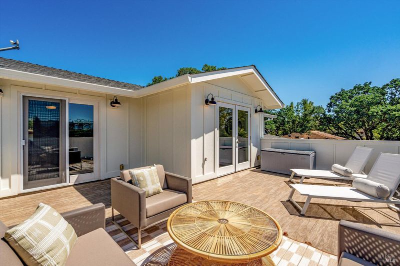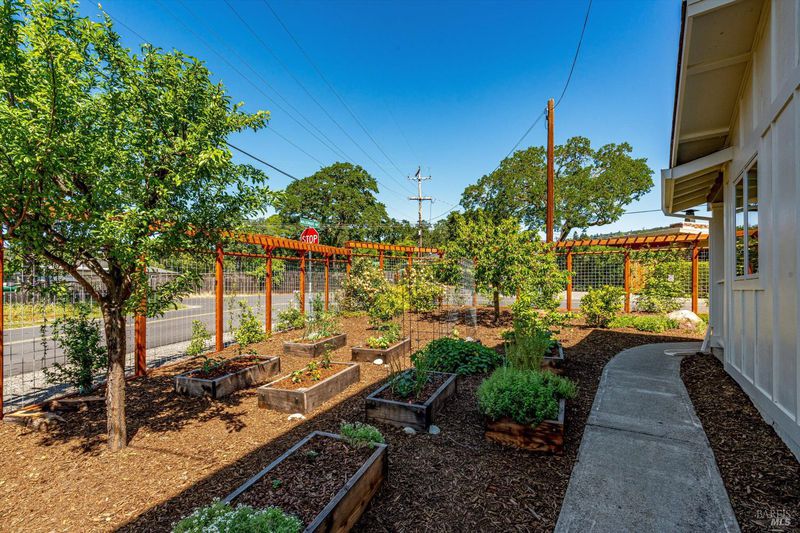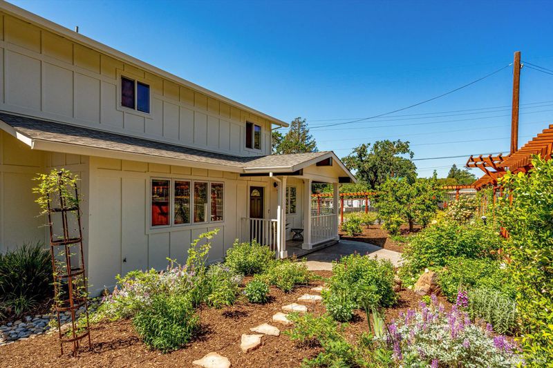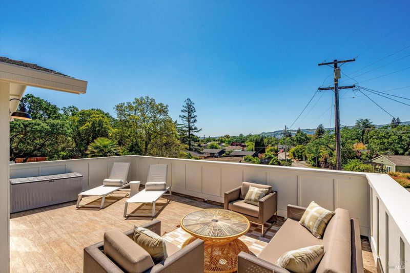 Welcome to Sonoma's Springs where good food, deep roots, and genuine community have always called home. Set in one of the Springs' most sought-after pockets, this 2014-built modern farmhouse stands out in all the right ways. As one of the largest, newest, and most carefully crafted homes on the block, it offers 4 bedrooms, 3.5 baths, and 2,430 +/- sq ft of space built for that easy Sonoma Valley lifestyle. The heart of the home is a bright, social kitchen designed for real life an oversized island, sunny breakfast nook, and open dining area naturally become the gathering spot for weeknight dinners and weekend hangs alike. Just a few steps down, the living room offers a connected place to exhale without missing a beat. The main level also features a spacious primary suite, an additional bedroom and full bath, and a convenient half bath and laundry perfect for guests, multigenerational living, or a dedicated work-from-home setup. A beautiful staircase leads to French doors that open to a 300 sq ft rooftop deck one of the home's true showstoppers. Sonoma Mountain views, glimpses of the iconic Sonoma Mission Inn water tower, and open sky make it the kind of spot you'll find yourself returning to every morning with coffee, every evening for golden hour, and after dark to see why it's called the Valley of the Moon or to catch a few shooting stars. Two generously sized bedrooms and a full bath complete the second level, offering room to spread out and settle in. Outside, the fully fenced garden is its own private world bursting with color, fragrance, and homegrown bounty. Six fruit trees offer fresh harvests across the seasons, raised veggie beds keep the kitchen stocked all summer, and a drought-tolerant pollinator garden blooms continuously from spring through fall. Out back, the detached garage has been freshly refurbished with updated siding and roof, the expansive yard offers green lawn and easy entertaining space, and there's even room for additional parking including RV use. Modern farmhouse style, indoor-outdoor flow, and a location at the heart of everything that makes the Springs special this is the kind of home that earns its nickname. The Queen of the Springs, and it shows.