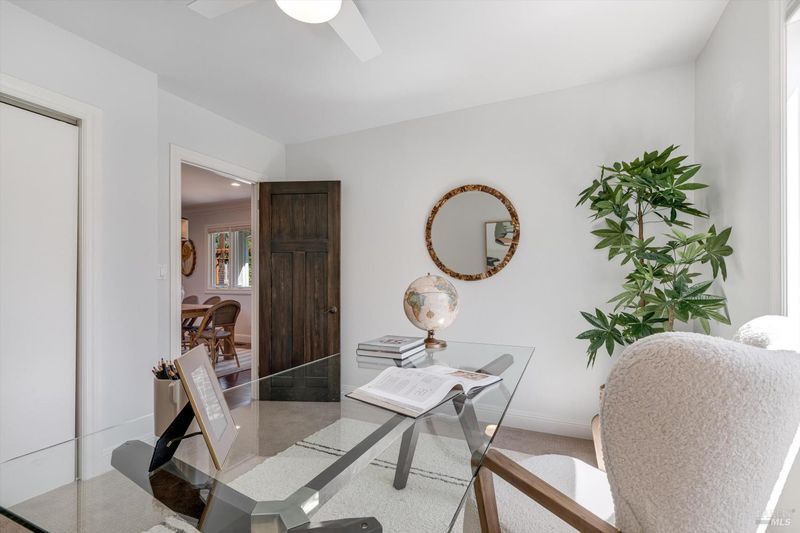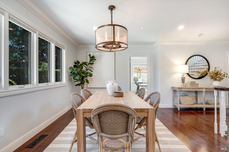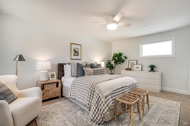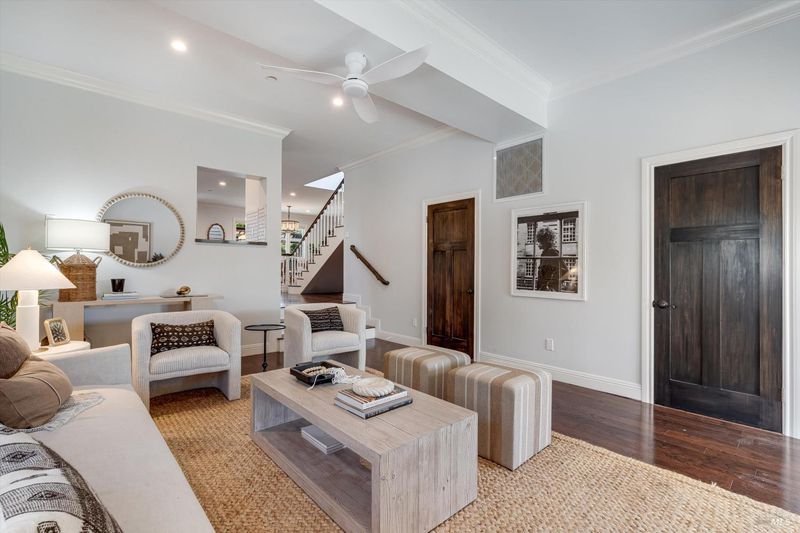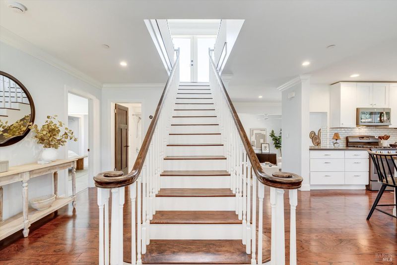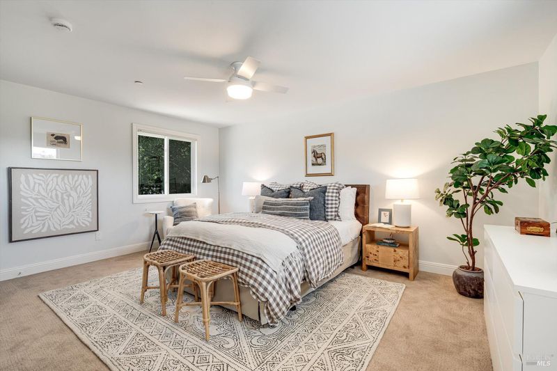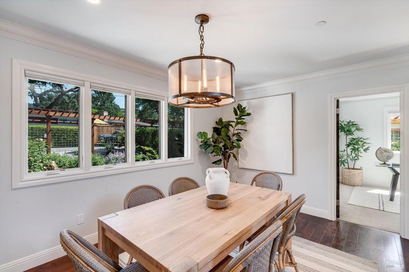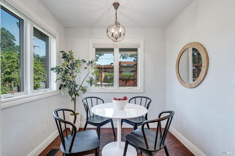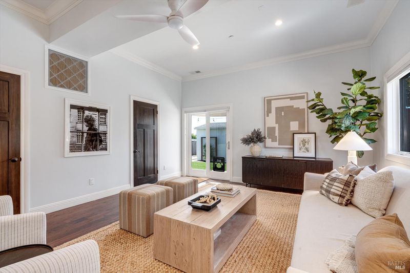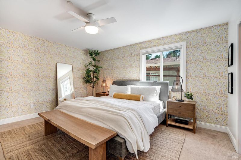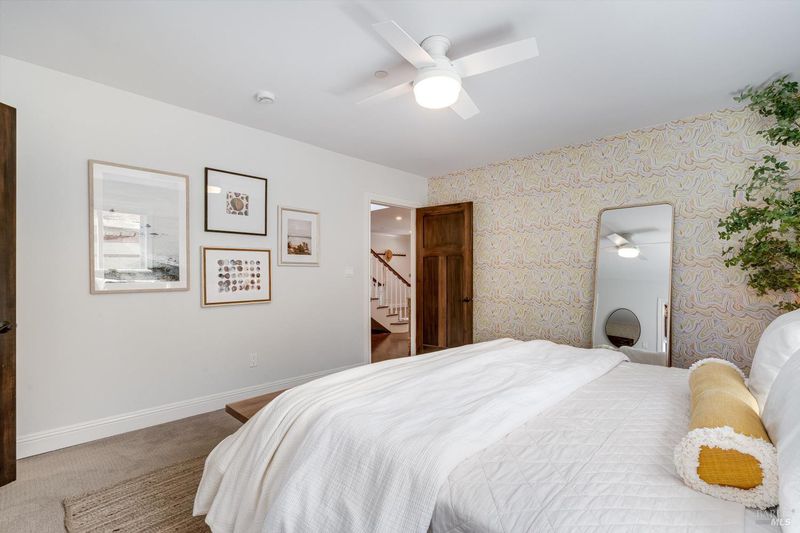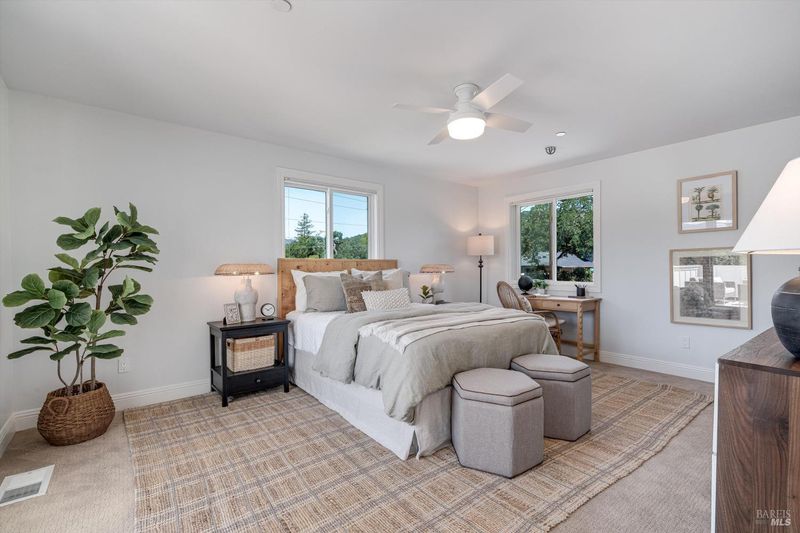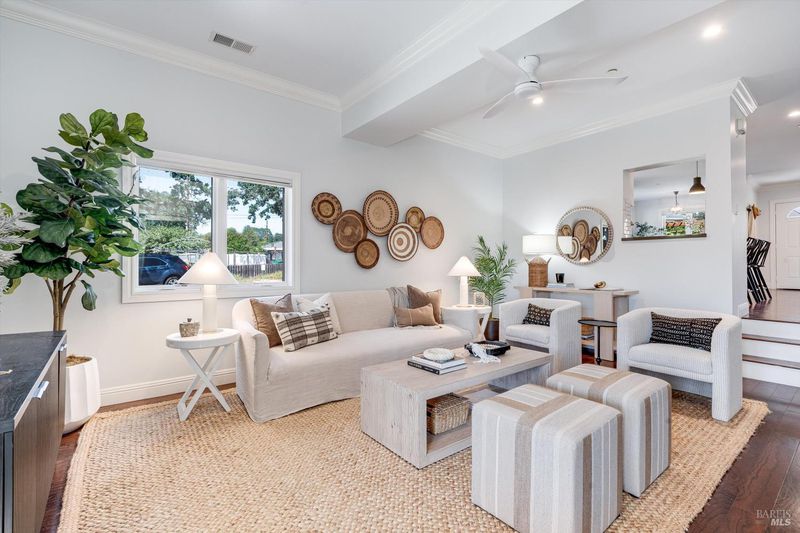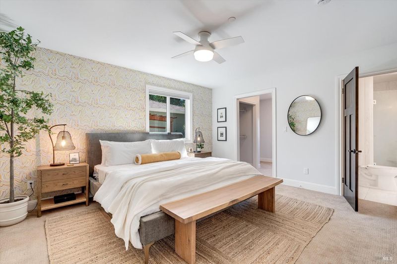 Welcome to Sonoma's Springs where good food, deep roots, and genuine community have always called home. Set in one of the Springs' most sought-after pockets, this 2014-built modern farmhouse stands out in all the right ways. As one of the largest, newest, and most carefully crafted homes on the block, it offers 4 bedrooms, 3.5 baths, and 2,430 +/- sq ft of space built for that easy Sonoma Valley lifestyle. The heart of the home is a bright, social kitchen designed for real life an oversized island, sunny breakfast nook, and open dining area naturally become the gathering spot for weeknight dinners and weekend hangs alike. Just a few steps down, the living room offers a connected place to exhale without missing a beat. The main level also features a spacious primary suite, an additional bedroom and full bath, and a convenient half bath and laundry perfect for guests, multigenerational living, or a dedicated work-from-home setup. A beautiful staircase leads to French doors that open to a 300 sq ft rooftop deck one of the home's true showstoppers. Sonoma Mountain views, glimpses of the iconic Sonoma Mission Inn water tower, and open sky make it the kind of spot you'll find yourself returning to every morning with coffee, every evening for golden hour, and after dark to see why it's called the Valley of the Moon or to catch a few shooting stars. Two generously sized bedrooms and a full bath complete the second level, offering room to spread out and settle in. Outside, the fully fenced garden is its own private world bursting with color, fragrance, and homegrown bounty. Six fruit trees offer fresh harvests across the seasons, raised veggie beds keep the kitchen stocked all summer, and a drought-tolerant pollinator garden blooms continuously from spring through fall. Out back, the detached garage has been freshly refurbished with updated siding and roof, the expansive yard offers green lawn and easy entertaining space, and there's even room for additional parking including RV use. Modern farmhouse style, indoor-outdoor flow, and a location at the heart of everything that makes the Springs special this is the kind of home that earns its nickname. The Queen of the Springs, and it shows.