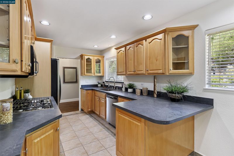 - Dishwasher, Double Oven, Gas Range, Microwave, Refrigerator, Dryer, Washer, Breakfast Bar, Counter - Solid Surface, Eat-in Kitchen, Gas Range/Cooktop