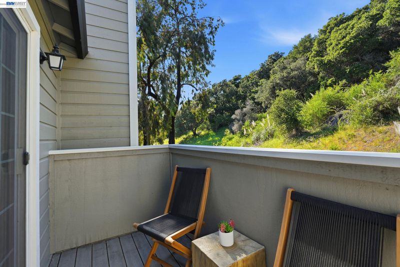 Experience the perfect blend of tranquility and modern comfort in this rare upper-floor end-unit condo in the sought-after, gated Shadow Woods community. This 1BD/1BA home (~815 sq ft) features vaulted ceilings, an open-concept living and dining area with fireplace. Fresh paint and updated luxury vinyl plank flooring throughout, along with refreshed stone bathroom flooring for a clean, modern feel. Seamless indoor-outdoor living with two (newly rebuilt) private balconies. Spacious bedroom with walk-in closet, ensuite bath, and washer/dryer. Community amenities include a pool, spa, and tennis courts within a well-maintained gated setting. Ideally located near Leona Canyon trails, Skyline Blvd, and I-580 for easy access to nature and commuting.