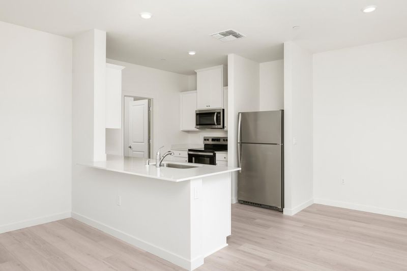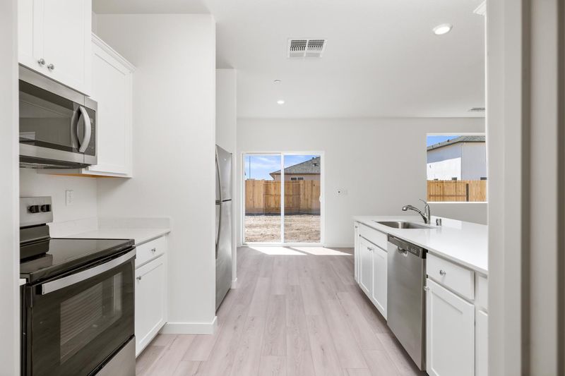 The Baker is a beautiful three bedroom, two bathroom home available now for a quick move in at Goldfields Ranch in Linda, California. This home has a warm and inviting feel from the moment you walk in, starting with a spacious kitchen that features new energy efficient appliances, quartz countertops, and recessed lighting. The open layout makes the living and dining areas bright and easy to enjoy, and the private primary suite includes a roomy walk in closet. With its charming exterior and comfortable design, the Baker is a place where you can settle in, relax, and feel right at home.