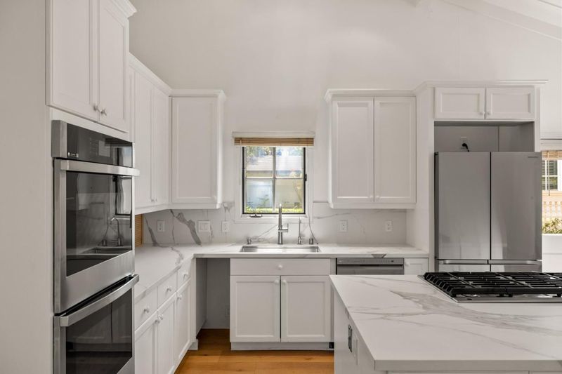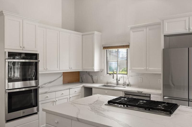 - 220 Volt Outlet, Cooktop - Gas, Countertop - Stone, Dishwasher, Garbage Disposal, Island, Oven - Built-In, Oven - Double, Refrigerator