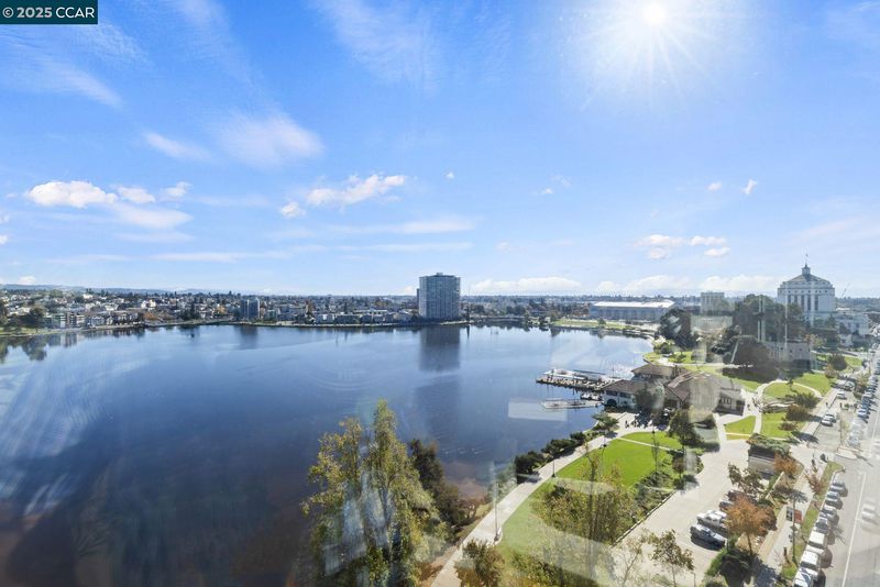 Welcome to The Essex on Lake Merritt, Oakland’s premier luxury high-rise. This 14th-floor, 2-bedroom, 2-bath condominium offers inspiring panoramic views of Lake Merritt, the downtown skyline, and the East Bay hills from the living room, kitchen, and primary bedroom. The 1,161 sq ft floorplan features an open living area, new carpets, new lighting, and fresh paint throughout. The primary suite enjoys sweeping lake views and an en-suite bath, while the second bedroom is ideal for guests or a home office. In-unit laundry adds convenience. The Essex provides 24-hour front desk security and doorman service, a resort-style pool and spa, a fully equipped gym, business center, conference room, and clubhouse. Two parking spaces in the gated garage are included. The building’s coveted Lakeside location is close to Whole Foods, Trader Joe’s, Lake Chalet, Grand Avenue and Lakeshore shops, the Farmers’ Market, museums, and countless restaurants and cafés. Commuting is effortless with BART, AC Transit, bike lanes, and nearby freeway access. Stroll the lakefront, enjoy the nationally protected bird sanctuary, and experience one of the most walkable and vibrant neighborhoods in Oakland. This is lakefront living at its finest.