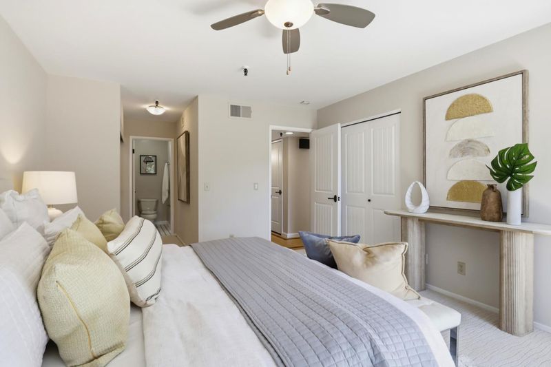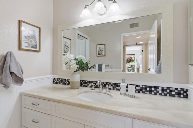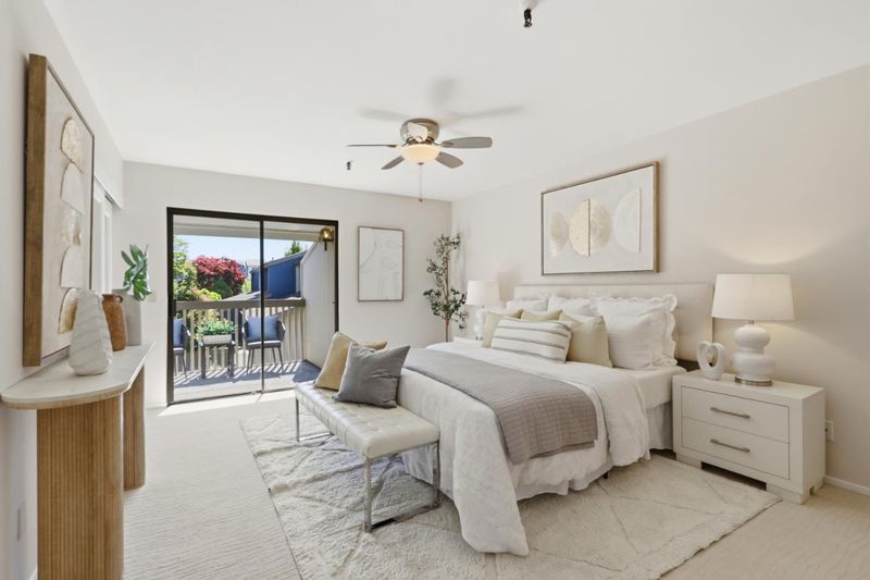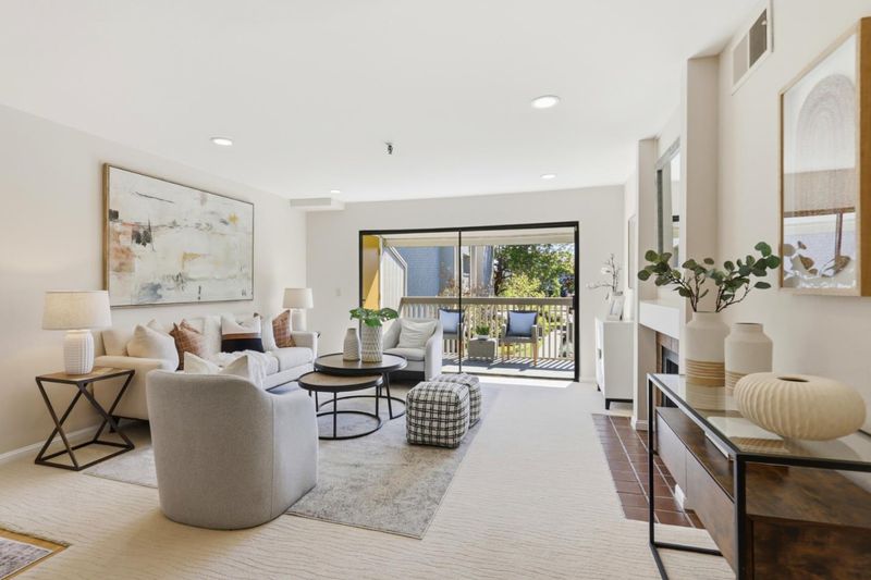 Spacious and elegant 1-bedroom, 1-bath condominium in the highly desirable Old Mill community. Ideally located on the upper level of the two-story E Building, this home features a bright deck with tranquil treetop views of the greenbelt and flowing stream. The serene living room offers beautiful views, a cozy gas fireplace, and direct access to the private deck, perfect for relaxing or entertaining. A separate dining area provides additional storage and space for gatherings. The oversized bedroom features three closet areas and a sliding glass door opening to the deck. The remodeled kitchen showcases contemporary cabinetry, granite counters, stainless steel appliances, and tile flooring. The updated bath includes a stylish vanity, tile floor, and tub/shower with tile surround. Additional features include recessed lighting, ceiling fans, new plush carpeting, fresh interior paint, inside laundry with stackable washer/dryer, and central heat and A/C. The lush Old Mill complex offers babbling brooks, lake with fountains, mature landscaping, two pools, two spas, and a clubhouse. Extra storage off the deck. Gated parking nearby with guest parking. Close to Mora Park, San Antonio Caltrain, shopping, dining, theaters, and major Silicon Valley employers.