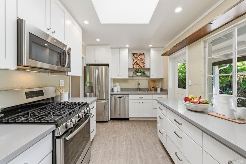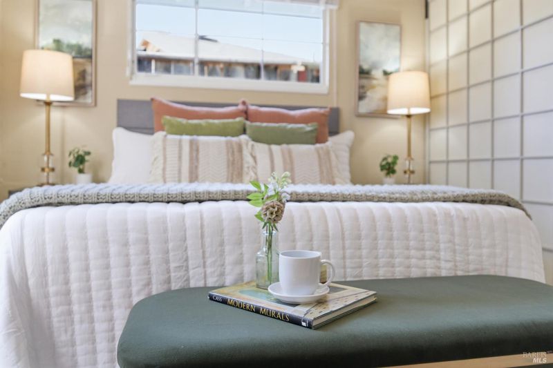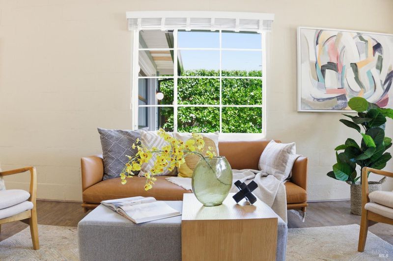 Step into timeless style with this charming mid-century home, ideally located just minutes from vibrant Downtown Napa. Designed to embrace natural light, expansive windows create a bright and welcoming feel throughout, while thoughtful updates blend classic character with modern comfort. The beautifully upgraded kitchen showcases stylish finishes and a skylight that fills the space with sunshine. An updated bathroom and updated flooring add contemporary touches while maintaining the home's original beauty. Outside, enjoy your own private, retreat-style backyard surrounded by mature landscaping in both the front and rear yards, creating a peaceful setting for relaxing, gardening, and gathering with friends. The home's unique construction helps keep it cooler in the summer and cozier in the winter, with the added benefit of low maintenance. Recent improvements include a newer roof, HVAC system, and water heater, highlighting the pride of ownership throughout. With its desirable location and move-in-ready condition, this gem offers the perfect combination of character, comfort, and convenience.