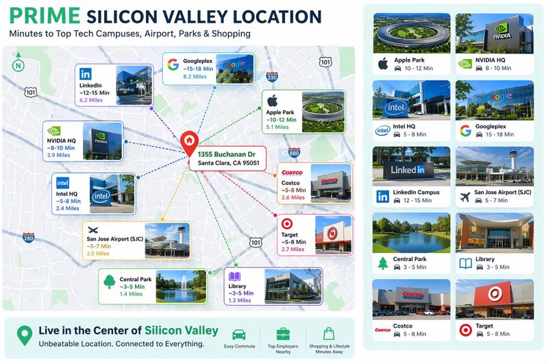 Beautifully remodeled and thoughtfully upgraded, this stunning home blends modern design with quality craftsmanship to deliver a truly move-in-ready experience. Bright and inviting living and dining areas feature wide-plank flooring, recessed LED lighting, fresh interior and exterior paint, and a sleek electric fireplace that adds both warmth and style. The designer kitchen showcases custom contemporary cabinetry, quartz countertops with a full-height backsplash, and brand-new stainless steel appliances perfectly combining function and elegance. Both bathrooms have been fully renovated with stylish finishes, including modern fixtures and LED-lit mirrors. Extensive system upgrades provide comfort and peace of mind, including a new water heater, central heating and air conditioning, and dual-pane windows throughout. The exterior is equally impressive, offering newly poured concrete and professionally landscaped front and backyard space ideal for outdoor living, entertaining, or gardening. Ideally located in the heart of Santa Clara, just minutes from major tech campuses including Apple, Nvidia, and Intel, with convenient access to highways, shopping, dining, parks, and everyday amenities. Come experience it for yourself. Don't miss this opportunity!