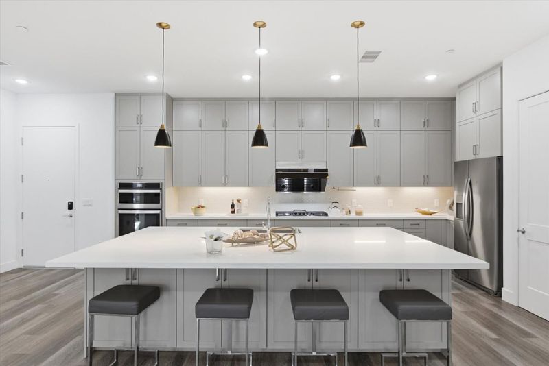 - Dishwasher, Island with Sink, Cooktop - Gas, Oven - Built-In, Countertop - Quartz, Pantry, Refrigerator