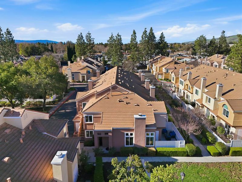 Rare corner unit townhouse offering enhanced privacy and abundant natural light, located in the desirable California Maison community. This updated 3 bedroom, 3 bath residence offers approximately 1,377 sq ft of living space with vaulted ceilings, fresh interior paint, and bright open living areas. The home features an updated kitchen, remodeled bathrooms with designer finishes, and multiple upgrades throughout. One bedroom and a full bathroom are located on the main level. Additional features include an in unit washer and dryer, generously sized bedrooms, and a private patio suitable for outdoor use. The property includes a one car attached garage with assigned parking, along with ample guest parking within the community. Conveniently located near Coyote Creek, Santa Teresa Park, and nearby trails, with easy access to shopping, dining, and major commute routes. Community amenities include a pool and hot tub.