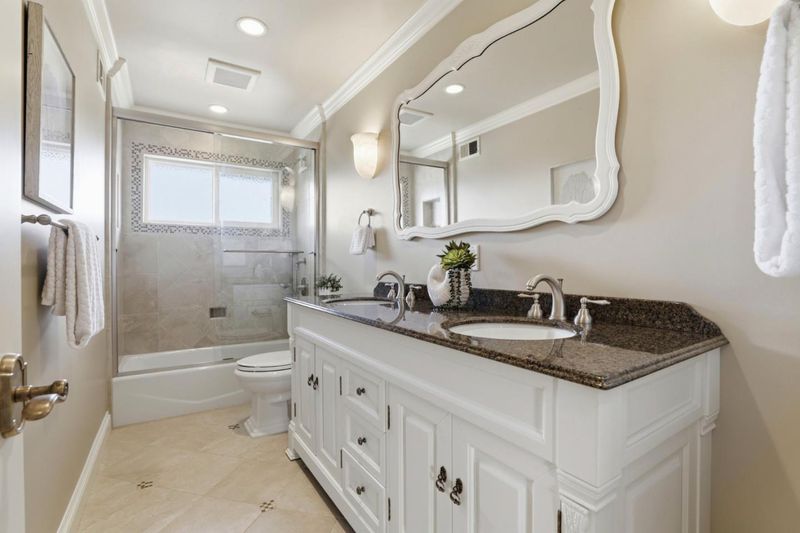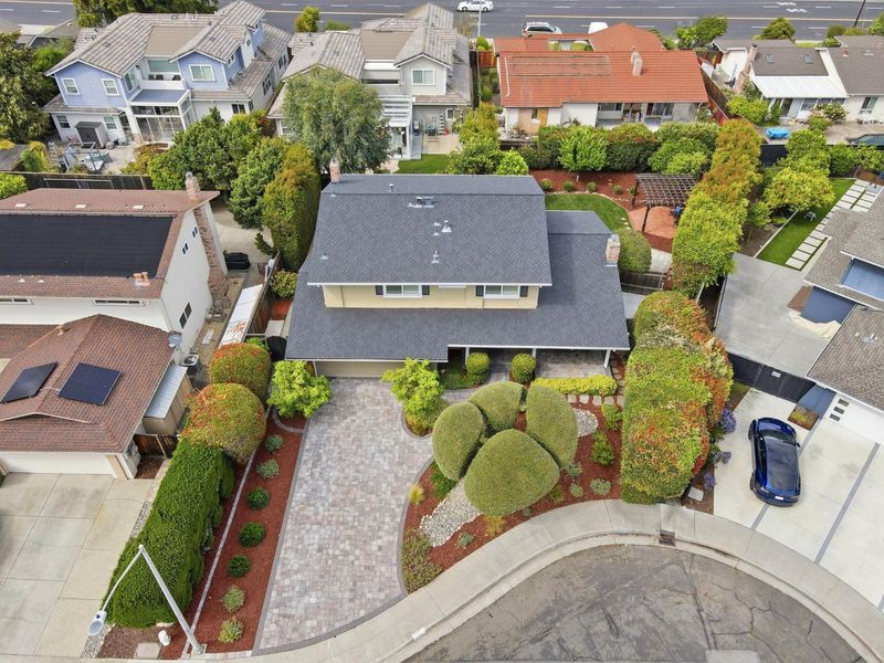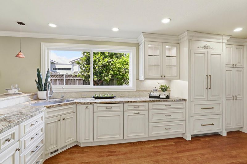Truly one of the finest homes to come to market, this exceptional home showcases quality craftsmanship, extensive remodeling, and timeless design. Situated on a beautifully landscaped lot, this home offers 4 bedrooms, 2.5 bathrooms, and approximately 2,213 square feet of living space. From the moment you arrive, the home impresses with curb appeal and a covered front porch. Inside, you are greeted by a light-filled floor plan with hardwood flooring, elegant finishes, and seamless indoor-outdoor flow. Enjoy the formal living room and dining area with fireplace and vaulted ceiling. The remodeled chefs kitchen features granite countertops, custom cabinetry, and premium Thermador appliances, opening to the family room for everyday living and entertaining. The spacious primary suite offers a private retreat with an en-suite bath featuring radiant heated flooring and custom cabinetry. The backyard is designed for relaxation and entertaining, with patio areas, lawn, mature landscaping, and a pergola. Additional highlights include A/C, ceiling fans, closet organizers, and a 2-car garage. Located in a highly desirable neighborhood with Cupertino schools (Eisenhower Elementary, Hyde Middle, Cupertino High), minutes to Apple Park, NVIDIA, Santana Row, Valley Fair, and key commute routes.