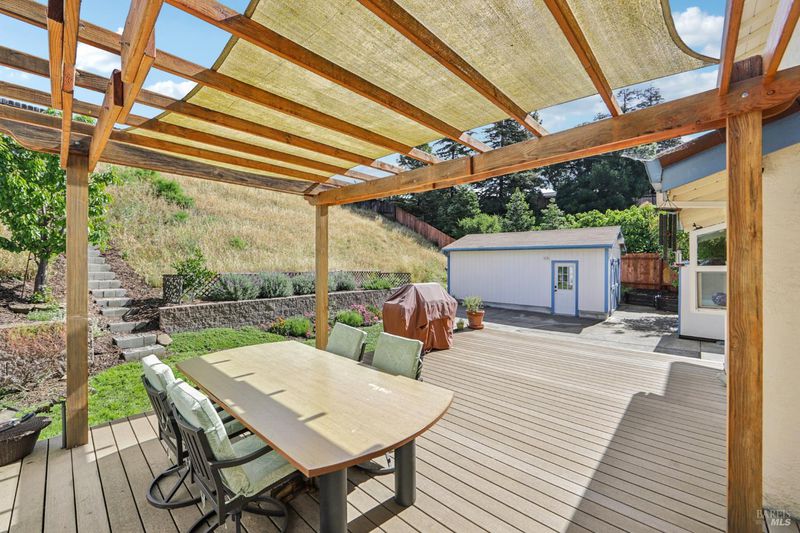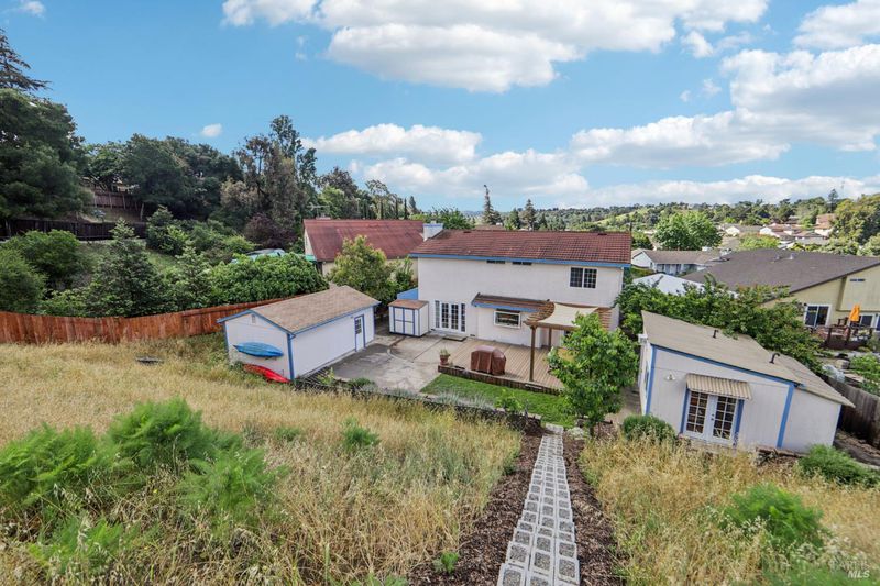 Welcome to your private sanctuary located in a quiet cul-de-sac in the highly sought-after Granada Heights neighborhood. This comfortable, all-electric home perfectly blends modern efficiency with spacious suburban living, sitting on an extra-large lot that offers rare breathing room and versatility, along with a bountiful array of fruit trees. Enjoy the large, open kitchen with Induction cooktop, double ovens, Stainless appliances and so much counter and storage space. Room sizes are generous, with a downstairs powder room for entertaining guests. The two car garage also includes a separate laundry/utility room for ease of use. Move in with total peace of mind knowing the home received extensive upgrades in 2023, including new heat pump A/C, heat pump water heater, dishwasher, Induction cooktop, plus EV charger circuit with plug, new Luxury Vinyl flooring on the stairs, and upstairs, as well as fresh paint. As an all-electric residence, it is designed for future-forward efficiency. The outdoor space is just as amazing, and includes a stunning deck with Pergola, rear steps to an upper level viewing bench, and way more fruit trees than can be listed here. The property features a beautifully renovated detached studio that goes far beyond a standard extra room. Whether you need a professional art space, a high-end home office, or a guest retreat, this fully permitted studio is ready with: full studio lighting and climate control via a dedicated heat pump (AC/Heat) as well as convenient hot and cold water hookups. If that were not enough, there are also several sheds and another permitted full size workshop as well. Sellers spent $6,000 to professionally design a Landscape and Irrigation plan for the hill in the rear, and that plan can be available. The location is convenient to any direction, and is so close to whatever you need, including restaurants, entertainment, Six Flags Marine World, freeways and SF Ferry Terminal. This is not an average home, see it to understand!