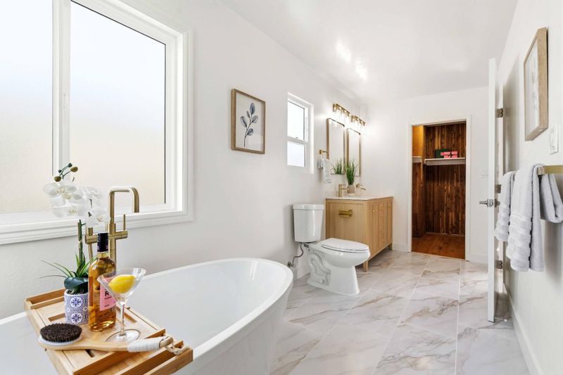 - Double Sinks, Dual Flush Toilet, Primary - Stall Shower(s), Shower and Tub, Shower over Tub - 1, Split Bath, Tile, Tub in Primary Bedroom, Tubs - 2+, Updated Bath