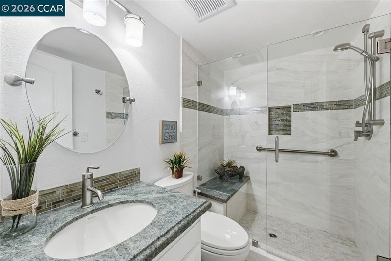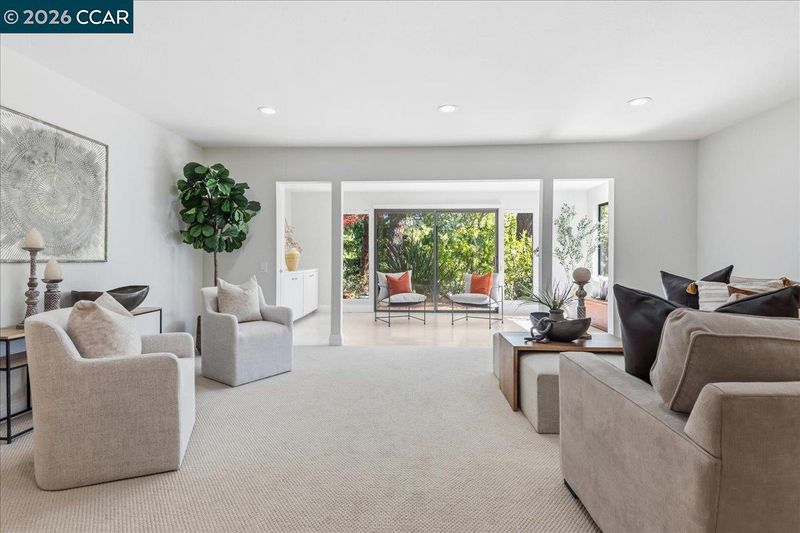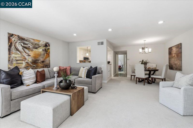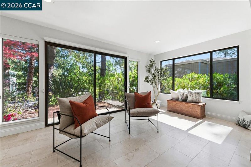 Tucked away among the trees in a quiet, park-like setting, this beautifully updated Piedmont Townhouse offers the perfect blend of space, comfort, and effortless living. Boasting over 1,900 square feet, the thoughtfully designed floor plan features three bedrooms and two-and-a-half tastefully remodeled bathrooms, a convenient first-floor level-in bedroom suite, ideal for guests, as an office, or easy one-level living when desired. Bathed in natural light, the home welcomes you with fresh paint, new carpeting, smooth ceilings, recessed lighting, washer/dryer, and an expansive living area that flows into a stunning enclosed sunroom with Travertine tile, perfect for relaxing, entertaining, or simply enjoying the tranquil views. The oversized primary suite is a true retreat, complete with a spacious bedroom, private open balcony, and a luxurious spa-like bath featuring a large tiled step-in shower. Move-in ready and thoughtfully maintained, this lovely townhouse is nestled in the highly sought-after Rossmoor community, renowned for its vibrant lifestyle. Privacy, comfort, and an active lifestyle, all in one wonderful home!