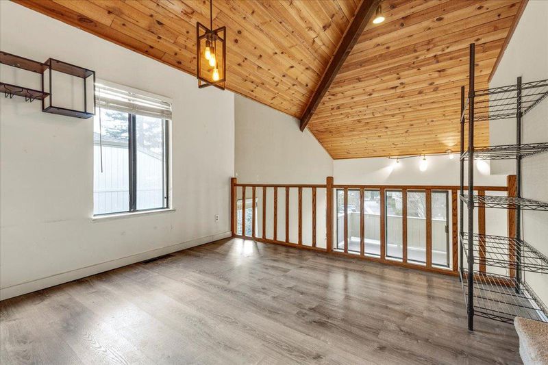 Beautifully updated and thoughtfully designed, this 2-bed, 2-bath end-unit townhome with a loft/office offers 1,287 sq. ft. of bright, inviting living space. This architecturally interesting unit features vaulted, wood-clad ceilings & large windows filling it with natural light, while luxury vinyl flooring flows through most. The updated kitchen features white cabinetry, open shelving, tile backsplash, quartz counters, & stainless appliances, opening seamlessly to the dining area & living room for effortless entertaining. The living rooms tiled wood-burning fireplace adds warmth & charm. The spacious primary suite on main level includes multiple closets & an updated ensuite with walk-in shower, dual vanities, & modern tile finishes. A generous second bedroom, in-unit laundry & utility rooms complete the layout. Enjoy outdoor living with three decks & a private fenced backyard (approx. 325 sq. ft.) a rare find in townhome living! Additional highlights include attached two-car garage, ample guest parking, and great storage throughout. Ideally located near Skypark, the Farmers Market, restaurants, and shopping, this townhome offers the perfect blend of comfort, convenience, and style just minutes from the beach. Also a quick drive to famed Santa Cruz beaches and the Redwoods.