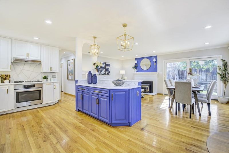 Recently updated one-story single-family home located in the desirable Strawberry Park neighborhood! The spacious living room is filled with abundant natural light and features large bay windows, creating a bright and welcoming atmosphere. This beautifully refreshed residence features an updated kitchen with new pendant lighting, modern fixtures, and a well-appointed dining area. The home also offers a separate family entertaining area with a cozy fireplace, perfect for gatherings and relaxation. The custom-designed tile bathrooms showcase new vanities, mirrors, and stylish finishes. Enjoy cozy evenings by the modern gas fireplaces in both the spacious front living room and the family entertaining area. The hallway showcases beautiful arches with decorative wall paneling, adding character and charm. Additional upgrades include new bedroom ceiling fans, double-pane windows, and contemporary lighting. The tranquil, generously sized backyard offers the perfect space for relaxation and entertaining. Conveniently located with easy access to Hwy 280 and 880, just minutes from the new Apple headquarters, and close to highly rated schools. A true gem in a prime Silicon Valley location.