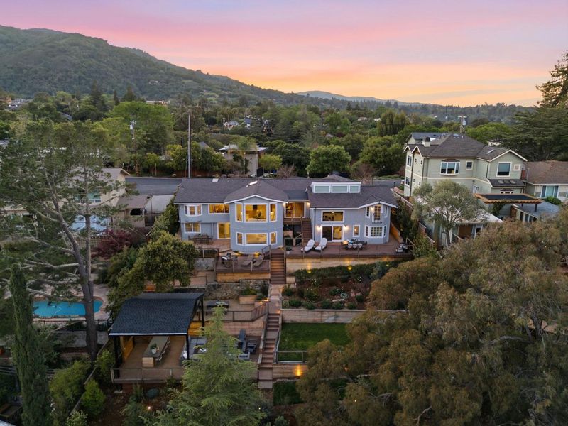 Spectacular views and a coveted walk-to-downtown Los Gatos setting define this impeccably remodeled residence offering approx. 3,912± sq ft on an expansive lot. With 5 beds/4.5 baths, the flexible layout is designed for everyday comfort and effortless entertaining, showcasing quality design and modern updates throughout. Soaring ceilings, skylights, open-beam accents, and large windows provide abundant natural light. The generous living room showcases a dramatic picture window framing sweeping views. The stunning kitchen features a large island, quartzite counters, premium appliances, pantry and designer lighting, seamlessly connecting to formal and casual dining spaces. The primary suite serves as a serene, private retreat. A separate and spacious family room offers versatility with an attached loft bedroom, office area, full bath, kitchenette, and separate exterior entry ideal for extended guests or multi-generational living. Beautifully landscaped grounds offer multiple new decks, lawn areas, and inviting outdoor spaces. The impressive covered pavilion includes a large island, bar seating, mounted TV, overhead heaters, outdoor refrigerator, built-in storage and more. All just moments from vibrant downtown LG, scenic St. Joseph's Hill trails, and award-winning LG schools.