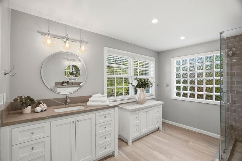 Double Sinks, Full on Ground Floor, Half on Ground Floor, Primary - Stall Shower(s), Stall Shower, Stall Shower - 2+, Tile, Updated Bath