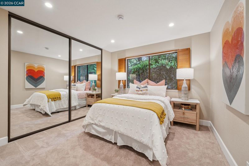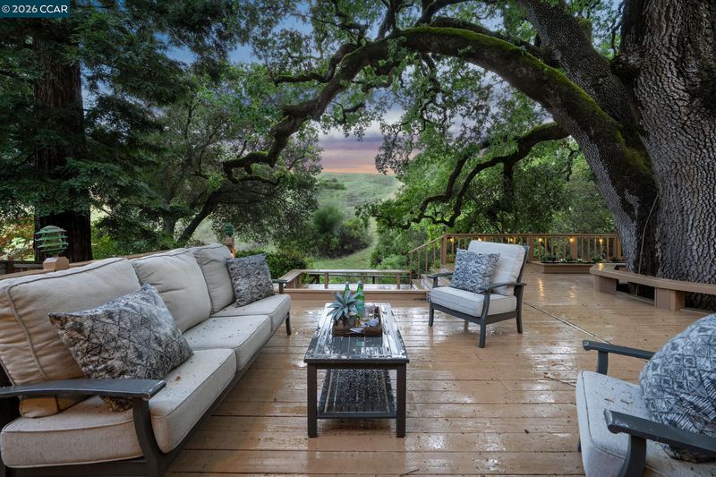 This stunning, sprawling single-story (w/ no steps!) home is nestled in the prestigious Hidden Oaks enclave of Blackhawk, surrounded by majestic oak & redwood trees that define California living at its finest. Featuring fresh exterior paint, new solar landscape lighting, newly painted cabinets new chandeliers and thoughtfully designed front yard landscaping, the home truly radiates warm curb appeal. Beautiful newer wood floors provide a sense of sophistication throughout the home. Grand layout has 3 bedrooms + office + bonus/flex room (optional 4th bedroom) w/ high ceilings & access to the spacious back yard. You will love the VIEWS , high-end sauna, new recessed lighting, built-in cabinetry, large laundry room, heated bathroom floors & spacious 3-car garage. Multiple living areas offer generous space for relaxation, connection, and shared experiences. The heart of the home opens to an expansive, refreshed deck that wraps around a magnificent 300+ year-old oak tree—an unforgettable backdrop for cooking.