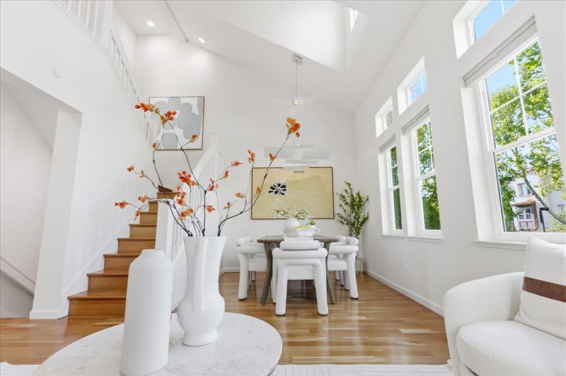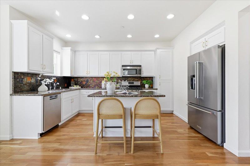 Single Family Residence lying within a PUD! This gorgeous home built in 2006, perfectly nestled near the rear of a private community just steps from the vibrant energy of Downtown Sunnyvale. The interior impresses immediately with soaring vaulted ceilings, gleaming hardwood floors, and expansive windows that bathe the dual living and dining areas in natural light. A true entertainer's dream, the open chef's kitchen features granite countertops, a breakfast bar island, and a built-in bar with a wine cooler, all accented by designer touches including the iconic "Oh Mei Ma" chandelier by Ingo Maurer. The versatile floor plan offers two beautiful primary suites, including a coveted ground-floor option, as well as a professional-grade home theater system and convenient inside laundry. Outside, the attractive backyard serves as a private retreat with its paver patio and soothing fountain. With a wonderfully low HOA and a prime location walking distance to Cumberland Elementary, parks, tennis courts, and top-tier retail like Whole Foods, Target, and Trader Joesplus local favorites like Heytea and Sweetgreenthis home offers an exceptional lifestyle with an effortless commute to Caltrain and major Silicon Valley employers. The kind of find you won't easily come across a second time.