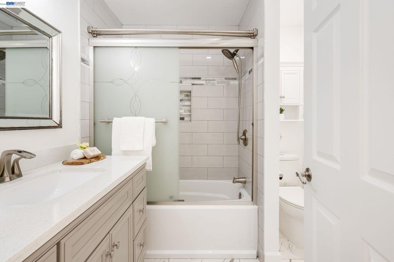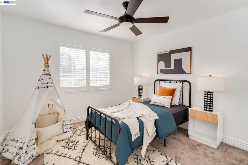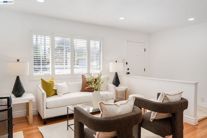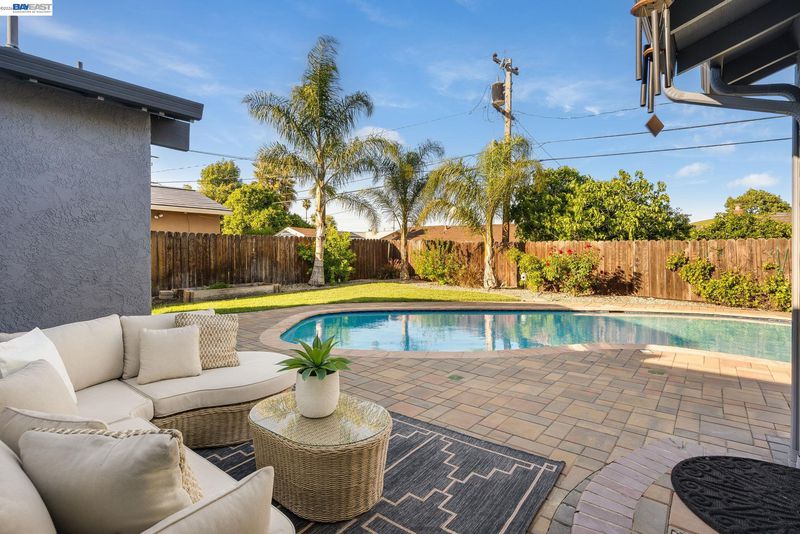Everything's been done — just move in. This ~1,850 sq ft showstopper has been thoughtfully transformed from top to bottom, with Tesla solar, updated roof, and fresh interior & exterior paint delivering standout curb appeal and long-term efficiency from day one. Inside, the double living room layout is the heart of the home — a sophisticated sitting area with stone fireplace opens through an arched passage into a vaulted family room with plantation shutters and a dramatic built-in entertainment center. The open kitchen ties it all together with granite counters, stainless appliances, a 3-seat breakfast bar, and solar tubes that keep the space bright all day. The primary suite offers a massive walk-in closet, and the remodeled bathrooms impress with quartz counters and clean subway tile finishes. Out back, the private oasis delivers: custom high-end pavers, a sparkling updated pool, mature palms, and a large play area — built for weekend entertaining and everyday living alike. Walkable to top-rated schools at every level, parks, shopping, and the Iron Horse Trail. Easy access to I-580/I-680, Dublin BART, and tech bus pick-up locations — commuting has never been simpler.