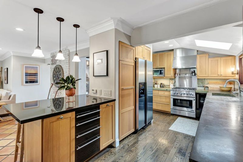 - Countertop - Concrete, Countertop - Granite, Dishwasher, Garbage Disposal, Hood Over Range, Microwave, Oven Range, Refrigerator, Skylight