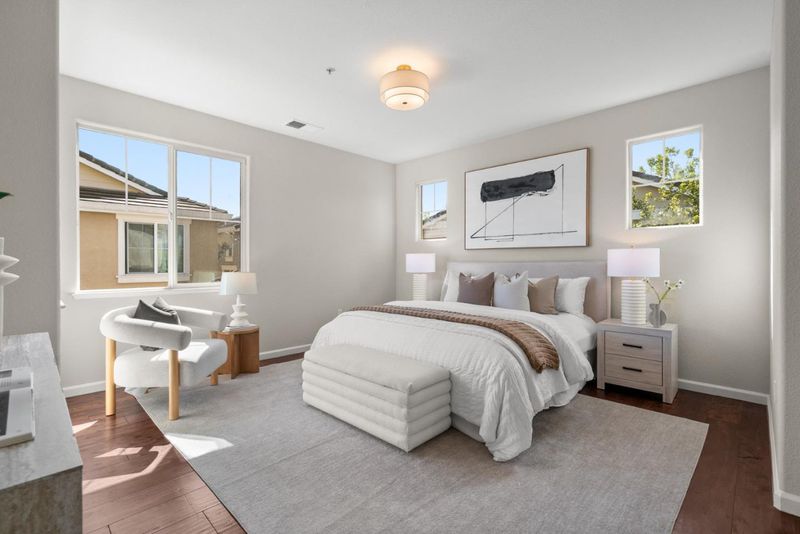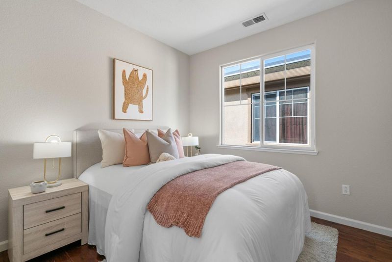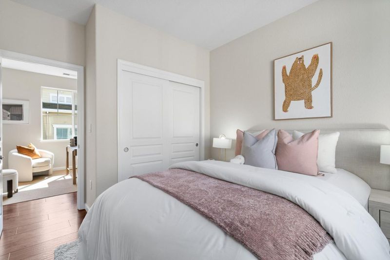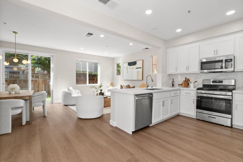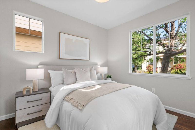 Beautifully updated newer construction home in a quiet Menlo Park location. This 4-bedroom, 3-bath home offers a desirable floor plan with a bedroom and full bath on the main level ideal for guests or a home office. The open-concept layout features a bright living and dining area connected to a refreshed kitchen with new Quartz countertops, new stainless steel appliances, and freshly painted cabinetry. All bathrooms have been upgraded with Quartz countertops, LED mirrors, and modern fixtures. Upstairs includes a versatile loft and three additional bedrooms, including a spacious primary suite with dual vanities, soaking tub, separate shower, and a large walk-in closet. Enjoy a low-maintenance backyard and energy-efficient features including owned solar panels, tankless water heater, Nest control and EV charger. Neighborhood park is down the street. And the best part, there is no HOA fee. Location is key. Just a 4-minute bike ride to Meta campus, close to downtown Menlo Park and Palo Alto, with easy access to Highway 101 for a short commute to high-tech companies throughout the South Bay and Peninsula, as well as convenient access to SFO.
