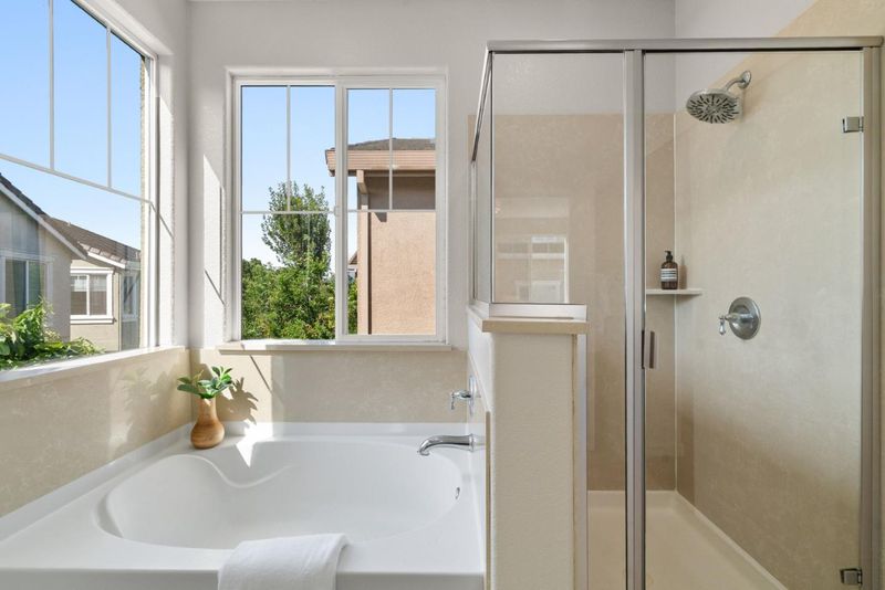 - Double Sinks, Full on Ground Floor, Oversized Tub, Shower and Tub, Shower over Tub - 1, Stall Shower, Tub