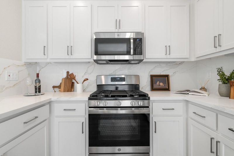 - Countertop - Quartz, Dishwasher, Garbage Disposal, Hookups - Gas, Microwave, Oven Range - Gas, Refrigerator