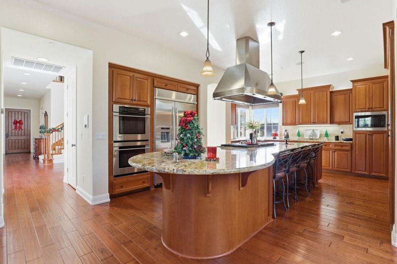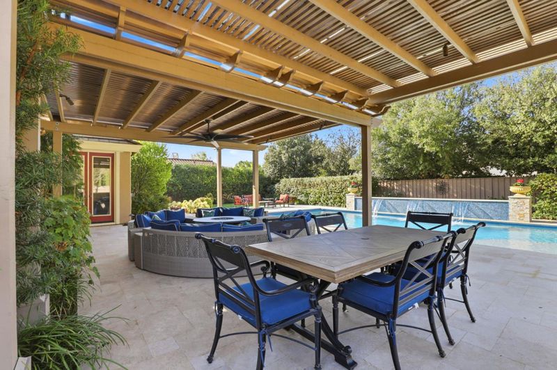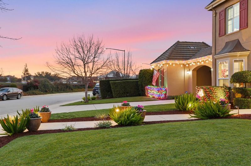 Perfectly positioned in the prestigious Alicante neighborhood of north Morgan Hill, this executive residence offers timeless design, exceptional scale, and resort-style living. Set on an expansive 17,459 sq. ft. lot, the home features a spacious floorplan of over 3,800 sq. ft. designed for both refined entertaining and everyday comfort. Soaring ceilings and warm hardwood floors create an inviting, light-filled atmosphere throughout. A private den with a cozy fireplace provides a quiet retreat, while a petite wine cellar adds a touch of sophistication. The chef-inspired kitchen is beautifully appointed with solid wood cabinetry, tile backsplash, granite countertops, and stainless steel appliances.. Step outside to a lavish, resort-style backyard offering exceptional privacy and ambiance. Enjoy a sparkling pool, stone patios with three separate gathering areas, a stone-clad BBQ bar, and a custom pergola, all enhanced by thoughtfully designed LED lighting that creates a stunning setting day or night. all complemented by an owned solar power system for energy efficiency and long-term value. This remarkable Alicante home blends luxury, space, and privacy in one of Morgan Hills most sought-after communities a rare opportunity to enjoy upscale living at its finest.