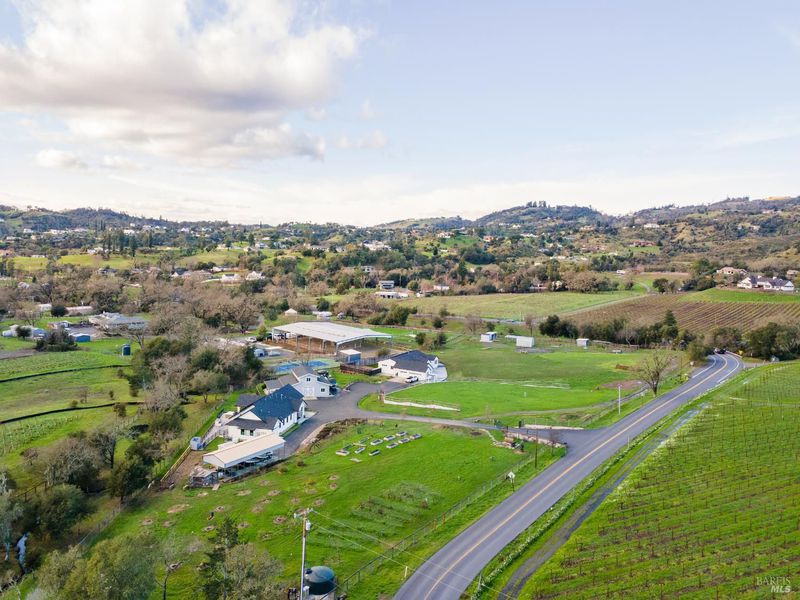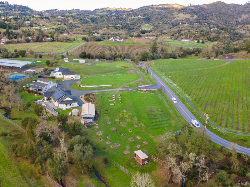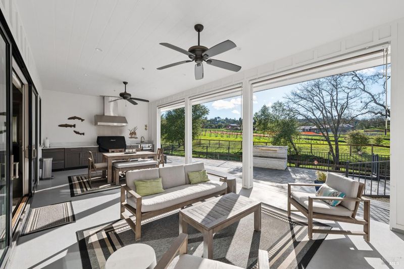 One-of-a-kind country property captures the essence of Sonoma County living you've been waiting for. Surrounded by sweeping Riebli Valley vineyard and pastoral views, this exceptional Santa Rosa estate presents a rare multi-home compound and horse property. Thoughtfully rebuilt, fully permitted & meticulously maintained spanning 6 1/2 fully fenced acres, it blends refined country living with versatility, privacy, and flexibility. The 2,460 sf main residence features 4 bedrooms and 3 1/2 baths with comfortable living space designed to take in the picturesque wine country setting. The 1-bedroom, 1 1/2 bath ADU is well-appointed with modern flair - ideal for extended family, guests, or rental use. The spectacular fully-equipped outdoor kitchen with nearby hottub creates an exceptional setting for effortless indoor-outdoor living. Above the huge barn/ workshop, a charming guest house with full bathroom provides additional flexibility and living space. Equestrian amenities include facilities for up to five horses with a tack room and hay barn. The land is equally productive, with two orchard acres featuring fruit trees, table grape vines, blackberry vines and raised beds. Additional highlights include covered RV storage with full hookups, fully-owned solar, backup generators, individual septic systems and propane tanks for each residence - an infrastructure designed for modern country living. This is a rare offering where vineyard views, open land, and a thoughtfully designed compound come together to create an idyllic retreat.