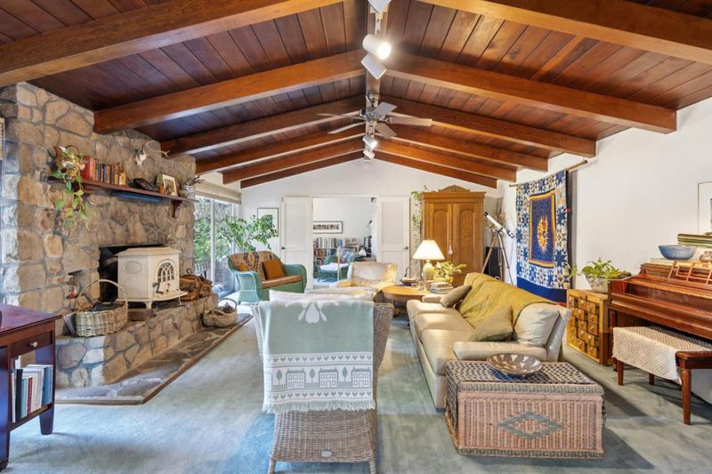 Set upon an extraordinary 3.25-acre setting, this charming one-story home offers a rare sense of seclusion and natural beauty, further enhanced by its adjacency to a protected 6-acre parcel that ensures enduring privacy. The grounds are a true sanctuary, featuring a 40-year-old native garden that blooms nearly year-round, and a spacious rear deck overlooks this serene landscape, creating a seamless connection between indoor comfort and outdoor living. The property is graced with mature fruit trees, including pear, cherry and peach trees that add both charm and seasonal delight. Inside, the living room is a striking centerpiece, featuring a grand stone fireplace with a wood stove insert, complemented by soaring redwood-beam ceilings that add warmth and character to the space. A generously sized family room offers flexibility for relaxation, entertaining, or extended living. Modern convenience meets country tranquility with reliable high-speed internet, making this an ideal retreat without compromise. Surrounded by scenic, horse- and dog-friendly trails and supported by a welcoming, close-knit neighborhood, this is a setting that offers both peaceful escape and a genuine sense of community and exceptional opportunity to experience refined rural living at its finest.