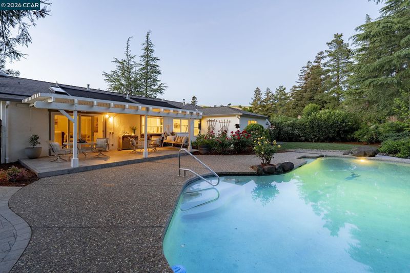 Located in one of Clayton’s most desirable neighborhoods, this beautifully refreshed home offers 4 bedrooms, 2 bathrooms, and approximately 1,895 square feet of living space. Freshly painted inside, the home presents a clean, move-in-ready feel complemented by refreshed landscaping that enhances its curb appeal. Inside, the home features a well-designed layout with a spacious living room, separate family room, kitchen nook, and a dedicated dining room. The kitchen is equipped with double ovens, ideal for cooking and hosting, and gorgeous granite countertops. Hardwood flooring flows through the main areas, while the bedrooms and living room feature comfortable carpeting. Dual pane windows allow for abundant natural light, and central heating, air conditioning and a whole house fan provide year-round comfort. The bathrooms have been tastefully updated, offering a fresh and modern feel. The backyard is a true oasis, featuring a solar heated sparkling pool surrounded by lush greenery, mature trees, and vibrant rose bushes, creating a serene and inviting outdoor setting perfect for relaxing or entertaining. Also included RV/Boat parking. Ideally located just minutes from downtown Clayton, local parks, hiking trails with access to Mt Diablo, shopping, and convenient commuter routes, this home combines comfort, functionality, and location in a highly sought-after setting.