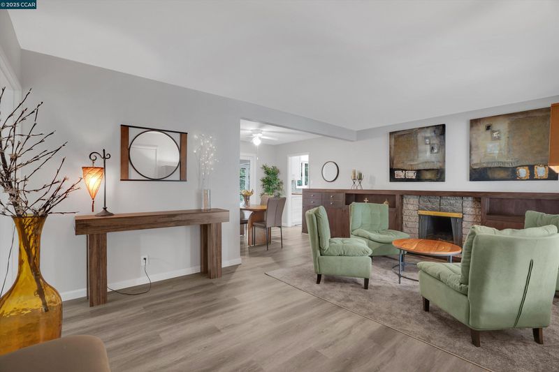 Discover a beautifully maintained home that is move-in ready, featuring improvements designed for modern comfort. Spacious floor plan offers flexibility with two separate living areas—a dedicated living room complete with a cozy brick fireplace and a family room, created from the converted garage, perfect for relaxing or hosting guests. Step onto the attractive luxury vinyl plank flooring that extends seamlessly throughout the entire home. The heart of the house, the kitchen, has been beautifully updated with stylish shaker cabinetry, premium quartz countertops, subway tile backsplash, high-quality newer stainless-steel appliances, including a gas range. Enjoy a large, functional utility/laundry room & the peace of mind provided by dual-paned windows, newer baseboards, hardware, light fixtures, and a newer roof. The primary bedroom is a true sanctuary, featuring an ensuite bathroom and direct access to the backyard patio. Outside, you’ll find a private, peaceful backyard oasis and a beautiful screened-in patio ideal for year-round entertaining. Quick access to major highways and BART for easy commuting. Just minutes from vibrant Downtown Pleasant Hill, with a variety of restaurants, shopping, and movie theatre. Don't miss this fantastic home & incredible location!
