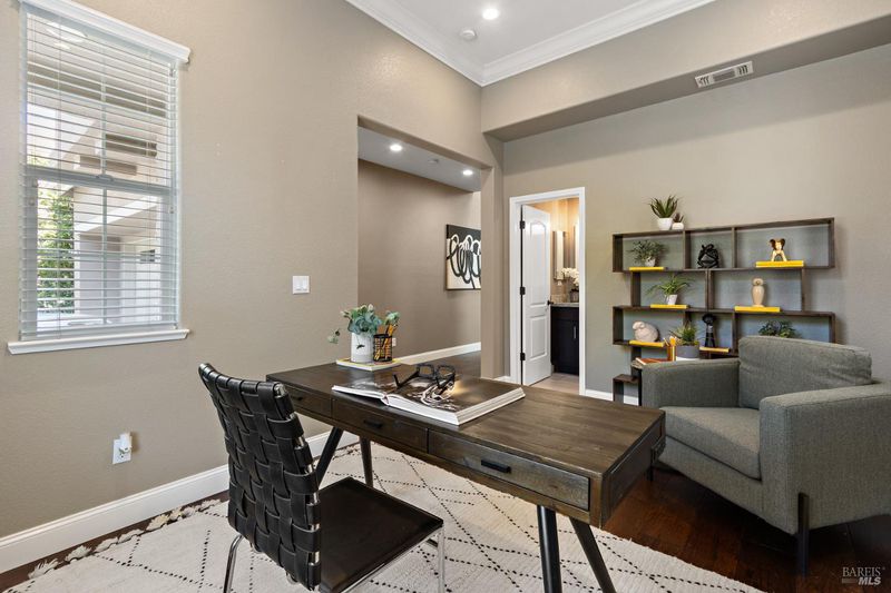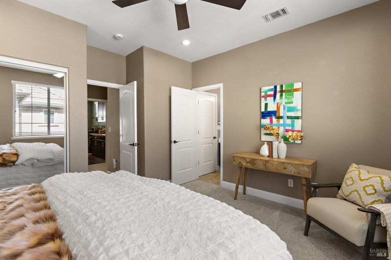 Honey, stop the car! Immaculate, turn-key home in the Orchards at Hiddenbrooke. Have to see it to believe it with all the work the sellers have done to this home. The kitchen will delight all those who love to cook, with quartz counters, tiled backsplash, island and stainless-steel appliances that convey. There are five total bathrooms, including two primary suites, and all have been updated. Once inside you'll find beautiful, engineered wood floors throughout the downstairs. Newer, dual zone central air & heat. Paid off solar panels and tankless water heater. Primary bedroom has a coffered ceiling and features quartz counters, wine rack and China cabinets. Other improvements include ceiling fans in all bedrooms, crown molding, recessed lighting and newer blinds. But wait, there's more - landscaped front and back yards with newer pavers, walkways and wood fence. Don't miss your chance to live in this amazing golf course community!