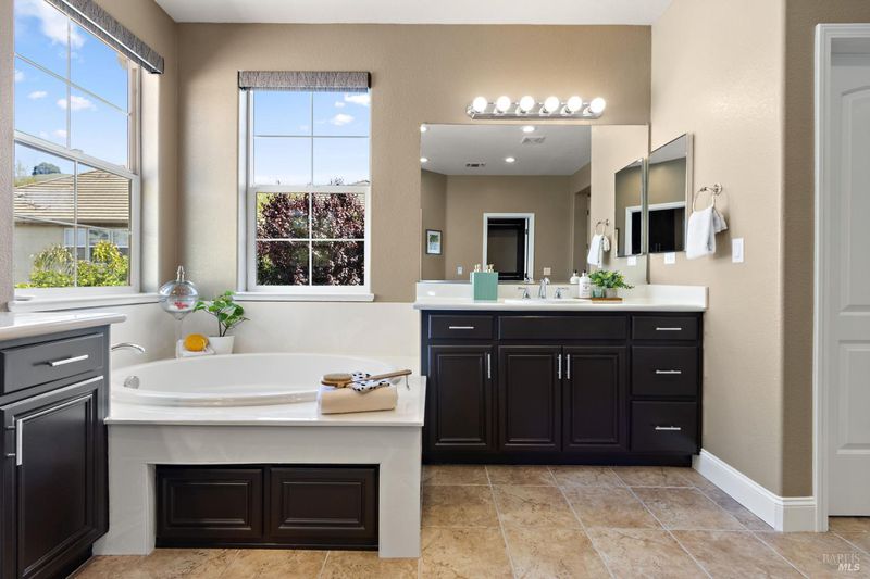 - Double Sinks, Multiple Shower Heads, Quartz, Shower Stall(s), Tile, Tub, Walk-In Closet, Window