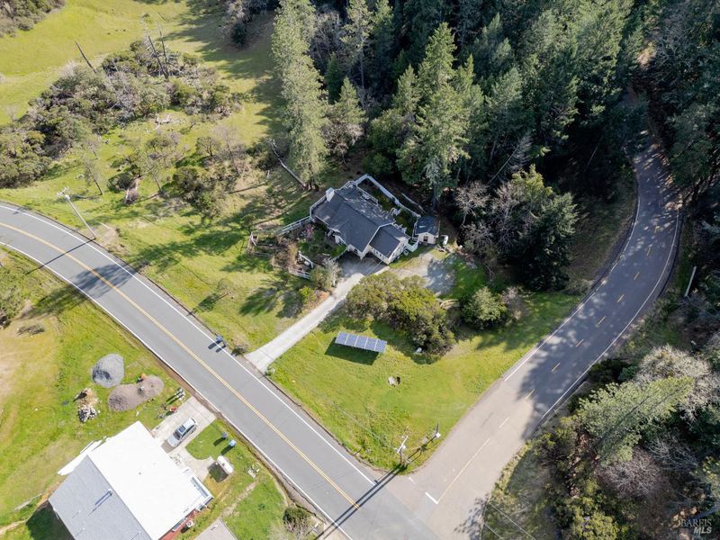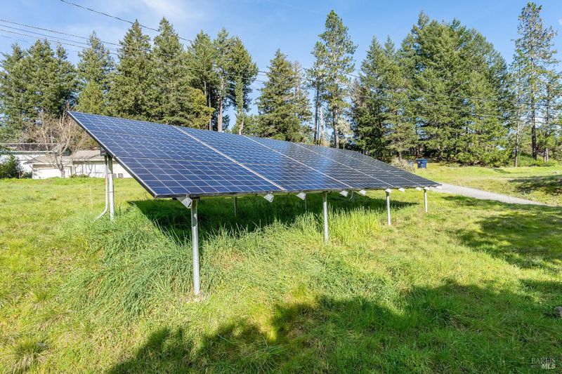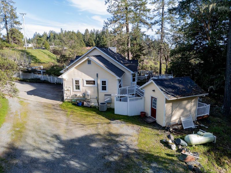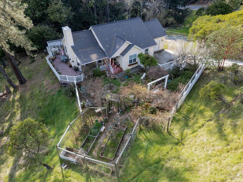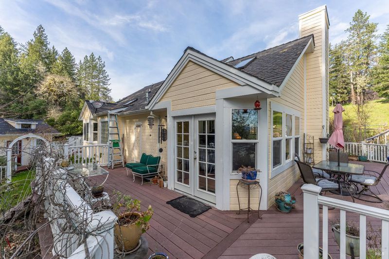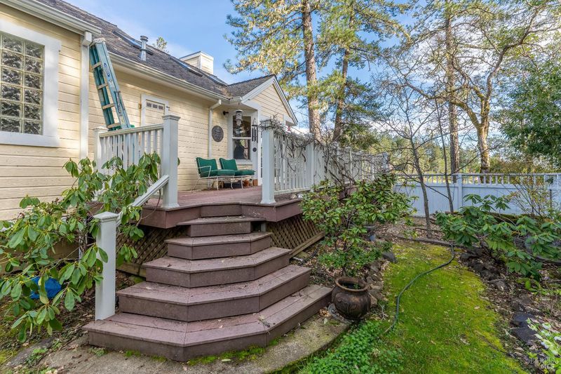 Beautifully maintained and thoughtfully upgraded, this stunning home built in 2003 offers the perfect blend of comfort, efficiency, and outdoor living on an expansive nearly half-acre lot. A true gem, the property features a recently installed grid-tied solar system with backup battery, providing both energy savings and off-grid capability. Surrounded by extensive deer fencing the grounds are designed for both privacy and functionality. Lush landscaping, raised garden beds, and a tranquil fishpond with waterfall create a serene outdoor setting, all backing to peaceful greenbelt for added space and natural beauty. The home itself welcomes you with a wrap-around composite Trex deck, perfect for entertaining or relaxing. Inside, you'll find a warm and inviting interior with white cabinetry, granite countertops, Laminate flooring, and a dining area that opens to the deck through French doors. Comfort is ensured year-round with central heat and air, along with a cozy propane fireplace insert. The spacious layout includes a versatile multi-room bedroom configuration, a private office space with power, and a light-filled primary suite featuring skylights, a walk-in closet, and a beautifully appointed bathroom with clawfoot tub and separate shower. With its combination of modern upgrades, sustainable living features, and beautifully curated outdoor spaces, this property offers a rare opportunity to enjoy privacy, functionality, and charm all just minutes from town.