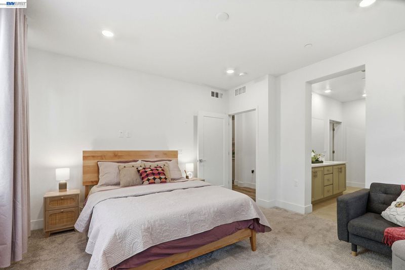 Modern & Luxury living. Security building and no stairs. Private garage with A rare and exceptional opportunity to own a luxury residence in one of Fremont's most desirable neighborhoods. This corner unit offers a unique vantage point and enhanced privacy. The interior is flooded with abundant natural light through wall-to-wall windows and enhanced by soaring ceilings, with mountain and city views. Nestled in a resort-style community, this home provides access to a large range of amenities: a fully equipped gym, relax by the pool, or host gatherings at the clubhouse and BBQ areas. The community also features parks, play structures, and bocce ball courts. Perfectly located for commuters, you are near major highways I-680 and I-880, and just a short distance from the BART station. The expansive primary suite offers a generous walk-in closet and a spa-like ensuite bath, while two additional bedrooms provide space for family or a home office. The grand living area flows into a chef-inspired kitchen with an oversized island ideal for entertaining. Additional highlights include LVP flooring, in-unit laundry, an attached two-car garage with an EV-ready outlet, owned solar panels, and the peace of mind of Lennar's 10-year structural warranty. No rental restriction. Won't last long!