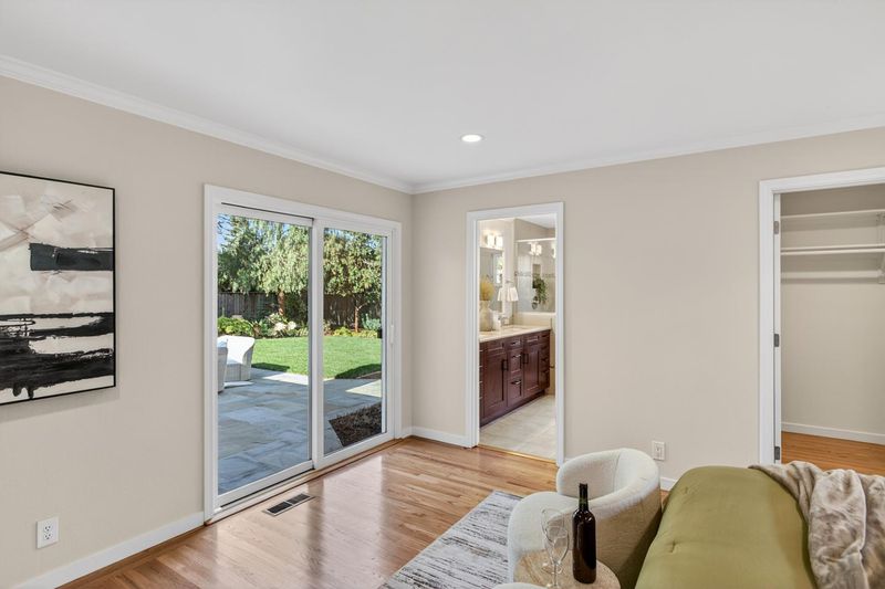 Fabulous Hayman home with top-rated Los Altos schools in the highly desirable Gest Ranch neighborhood of Mountain View bordering Los Altos. This well-built, well-maintained ranch home offers a functional single-level floorplan with an open, spacious contemporary aesthetic, abundant natural light, and beautifully landscaped outdoor spaces. Light-hued, newly refinished hardwood floors extend throughout, complemented by expansive windows. Substantial remodeling and updating in 2011 expanded the kitchen and primary suite. The large skylit kitchen is bright and well-designed with quartz countertops, quality appliances, and an island with elevated bar seating, opening to the family and dining spaces for everyday living and entertaining. Both the front and back yards are professionally landscaped, with a large Connecticut bluestone patio, granite millstone fountain, drought-tolerant plantings with color in four seasons, mature trees, and lush lawn areas, offering multiple areas to relax, play, and gather. Conveniently located steps from Saint Francis High School and close to parks, shopping, dining, and main commute routes to major employers, this home combines classic appeal, livable design, and an excellent Silicon Valley location.