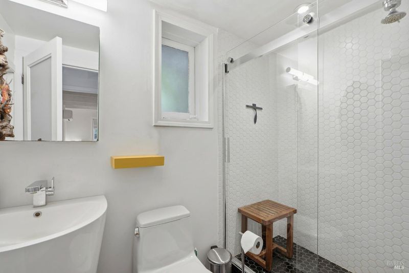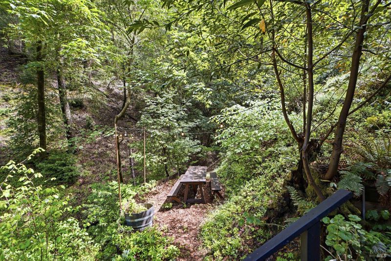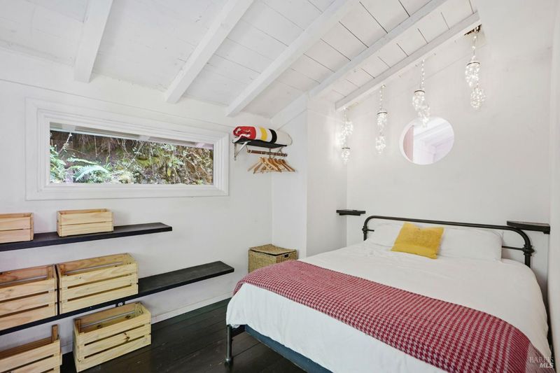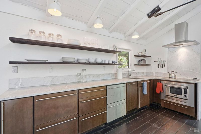 This charming 1963 hillside cottage packs an incredible punch into 922 square feet hardwood floors, light from every angle, and a chef's kitchen that will stop you in your tracks. And what a kitchen it is. Viking combination oven (steam, microwave & convection), Viking induction cooktop, drawer refrigerators and freezer, Bosch whisper dishwasher, and stunning marble counters. Designed for the serious cook and the casual entertainer alike. Step outside to private decks and a hot tub perfectly positioned for soaking under the redwoods after a day on the Russian River. Armstrong Redwoods, world-class wineries, and Guerneville's beloved dining and shops are all just minutes away. Whether you're seeking a full-time home or the perfect weekend getaway in one of the North Bay's most sought-after destinations this one delivers.