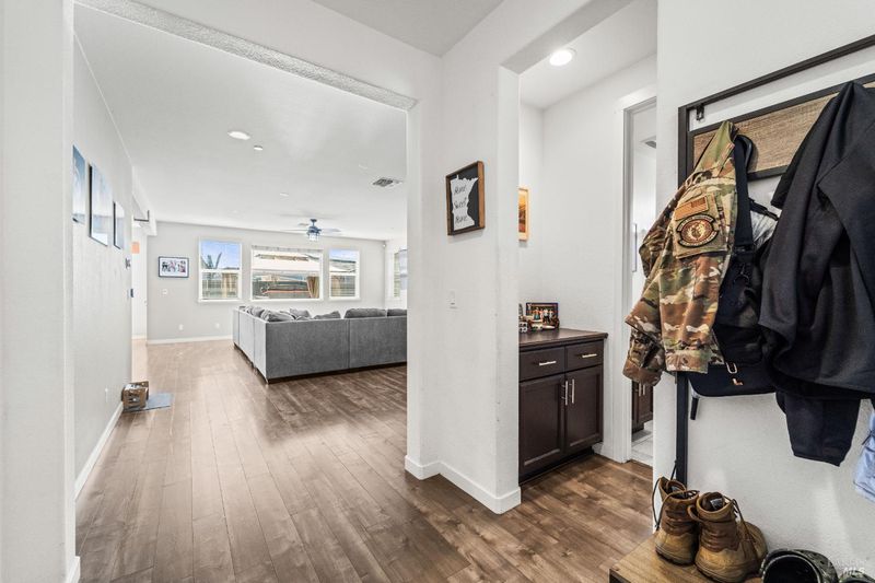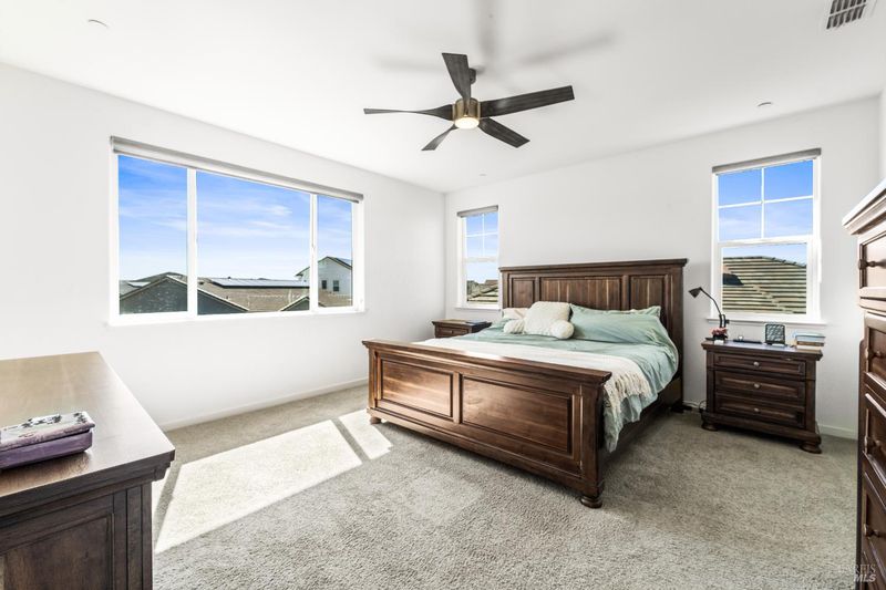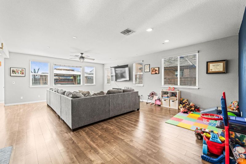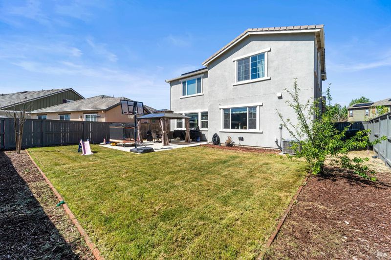 Designed with the modern family in mind, this expansive 4 bedroom, 3 bathroom home offers 2,474 sq.ft of thoughtful, move-in ready living, with no HOA. Soaring vaulted ceilings and an open-concept layout make the home feel bright and airy the moment you walk in. Energy-efficient windows amplify that feeling, flooding every room with natural light. The gourmet kitchen is the heart of it all. Featuring a large, quartz island, with a breakfast bar-ideal for quick mornings to weekend entertaining.The layout flows naturally into the grand living room, keeping the family connected whether you're cooking, hosting, or unwinding. Need a break? retreat to your upstairs loft that creates just enough separation. A full bathroom and bedroom on the main level make this home as functional as it is beautiful, perfect for guest or next-gen living. Step outside to a spacious, finished backyard with a charming gazebo and new irrigation system. This generous lot has so much to offer! Owned solar panels, new tankless water heater, and EV charging capability complete the picture, putting long-term savings and sustainability right at home.