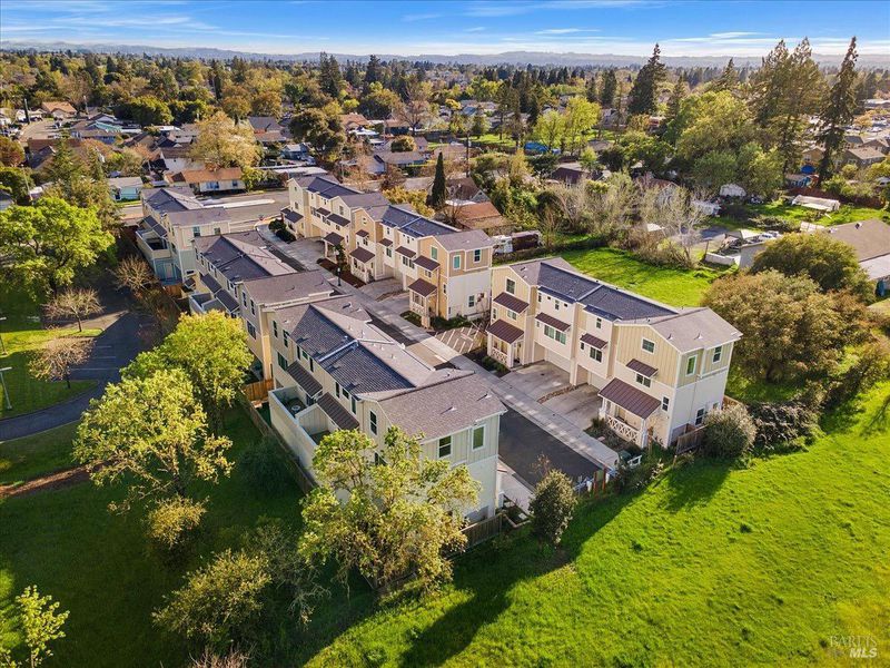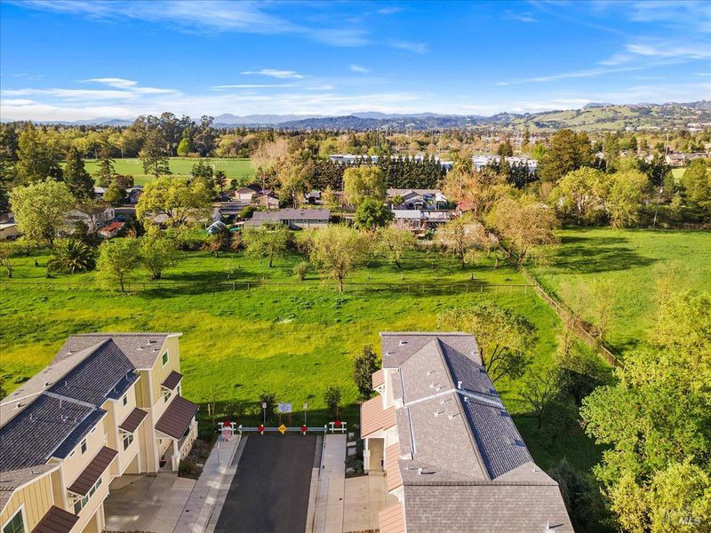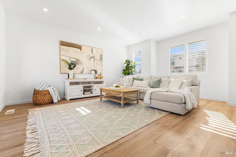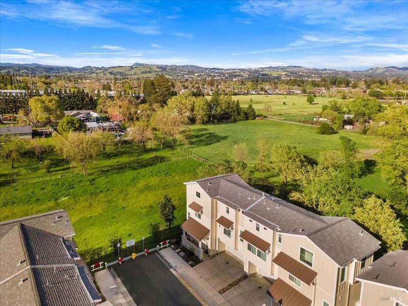 Welcome home to this stunning, nearly new property located just minutes from everything Santa Rosa has to offer yet it feels like you're living in the country with peaceful views right from your balcony. This 3-bedroom, 2.5-bathroom home offers a flexible floor plan perfect for modern living. On the lower level, you'll find a versatile room plus a spacious storage area tucked under the stairs. The main level features a beautifully designed open-concept kitchen, dining, and living area with luxury LVP flooring, quartz countertops, and an abundance of natural light. A private balcony overlooks open space, creating the perfect place to unwind. Upstairs, you'll find an additional bedroom, full bath, and the gorgeous primary suite complete with a large walk-in closet and an elegant en suite bath. VA eligible NO HOA, and move-in ready, this home blends style, comfort, and convenience in one beautiful package.