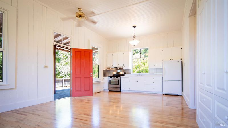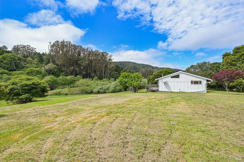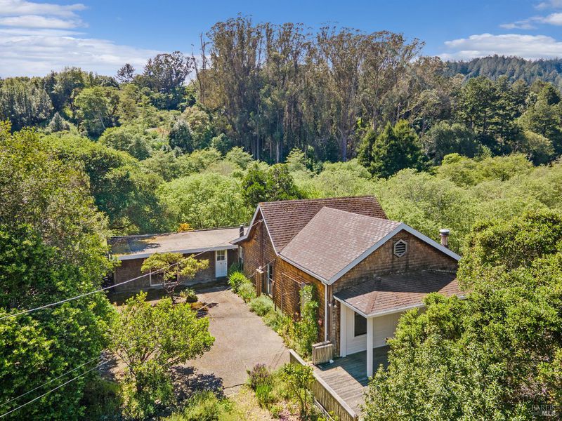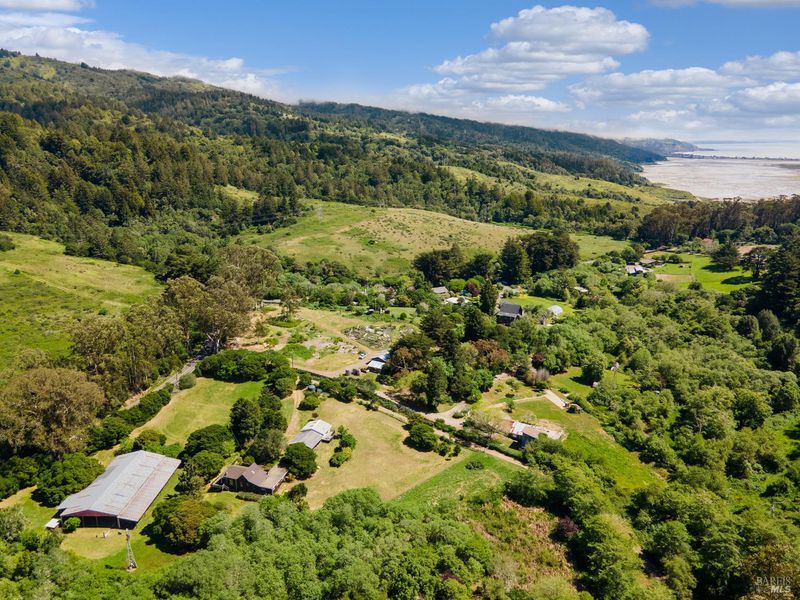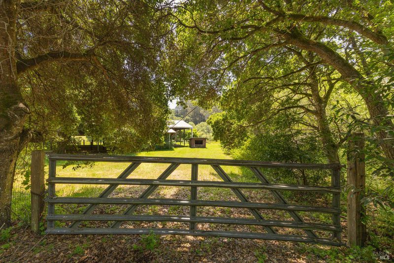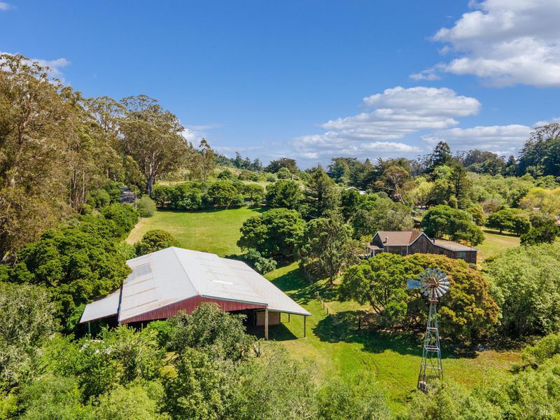 Set along the southern edge of the Olema Valley in Bolinas, within the historic hamlet of Dogtown once known as Woodville, this four-acre generational property is being offered for the first time in over six decades. Dating to the early 1900s, the farmhouse reflects the character of early West Marin ranch architecture with high ceilings, gabled roofs, porches, and a history of families connected to the land. Sunlit and bordered by a seasonal creek, the property is surrounded by the protected parklands of Point Reyes National Seashore and the Golden Gate National Recreation Area, with fantastic nearby access to the horse, hike and biking trail systems such as the Olema and McCurdy trails. Zoned Agricultural Residential and spanning approximately four acres, the property offers pastoral meadows, mature fruit trees, a vintage ranch windmill, and a collection of outbuildings that speak to its agricultural history. A 7,000 sq ft pole barn horse arena, once used for roping and sheltering horses, remains a defining feature of the landscape. The front porch leads into an inviting kitchen with a wood-burning fireplace, soaring ceilings, hardwood floors, tucked-away cabinetry, and a large window framing Inverness Ridge. A hallway extends from the kitchen and connects two bedrooms, a full bathroom, and a family room to an additional wing with another bedroom, full bathroom, laundry area, and a larger room lending to other possibilities.A separate structure on the property provides additional living space with one bedroom, one full bathroom, loft space, a wood-burning stove, and an open kitchen and living area. A large sliding glass door opens to a deck overlooking the surrounding pasture and beautiful landscape. Additional structures include a two-car carport, tool shed, workshop, paddock, a vintage windmill, and an abundant well with two water tanks; a notable advantage over many Bolinas properties that rely on metered water with use restrictions. Throughout the grounds, a mature canopy of oak, cedar, redwood, willow, eucalyptus, and fruit trees shapes the setting. Light moves across the land from morning through evening as deer, migratory birds, and Anna's hummingbirds pass through. Beyond the house, through a stand of willows, lies the Willow Kingdom, a place where generations explored. Rich in history, beauty, and possibility, this land carries the layered history of the Coast Miwok, early ranchers, and the generations who have called Dogtown home.