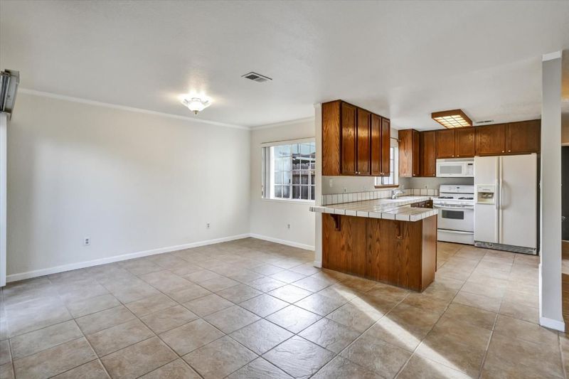 Welcome to this charming 3-bedroom, 2-bathroom home located in the city of Hollister. This inviting residence spans approximately 1,330 square feet and offers a comfortable living environment with thoughtful features throughout. The heart of the home is the kitchen, equipped with a self-cleaning oven, seamlessly connected to the family room, ideal for both everyday living and entertaining. High ceilings enhance the spacious feel of the living areas, creating an airy and open atmosphere. The flooring throughout the home includes a combination of carpet and tile, providing both comfort and practicality. A cozy fireplace adds warmth and character to the family room, perfect for relaxing evenings. Convenience is key with an in-garage laundry setup, making household chores a breeze. The property is located within the Hollister Elementary School District.