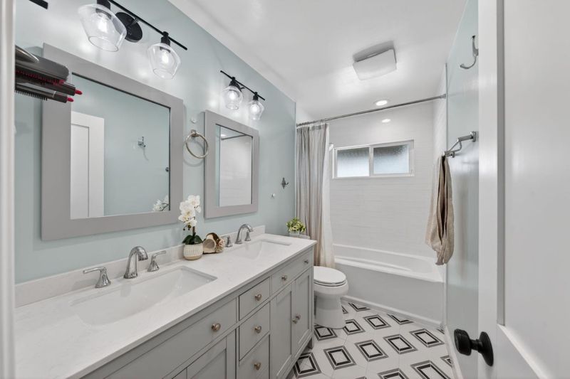 Welcome to 1841 Rochelle Drive, a beautifully updated home in the heart of Cambrian, San Jose. This 3 bedroom, 2 bathroom home offers 1,300 square feet of comfortable living space on a 5,702 square foot lot. The bright remodeled open floor plan features recessed lighting, oak hardwood flooring, and abundant natural light throughout. The living and dining areas flow seamlessly into the kitchen, ideal for everyday living and entertaining. The updated kitchen showcases white shaker cabinetry, quartz countertops with a 17-foot island, subway tile backsplash, built-in desk area, dual basin stainless steel sink with water filtration, and Bosch stainless steel appliances including a 5-burner gas cooktop, oven, microwave, dishwasher, and refrigerator. The dining area seats 8 and features a cozy gas fireplace and sliding glass doors that open to the backyard. The private backyard includes a pergola-covered deck, lush lawn, and fenced perimeter. Both bathrooms are tastefully updated with modern finishes. The primary suite offers great natural light and a mirrored closet. Additional highlights include owned Tesla solar with two battery backups, dual EV chargers, an epoxy-finished two-car garage with workbench. Just steps away from Doerr Park, Bagby Elementary, Ida Price Middle, and Branham.