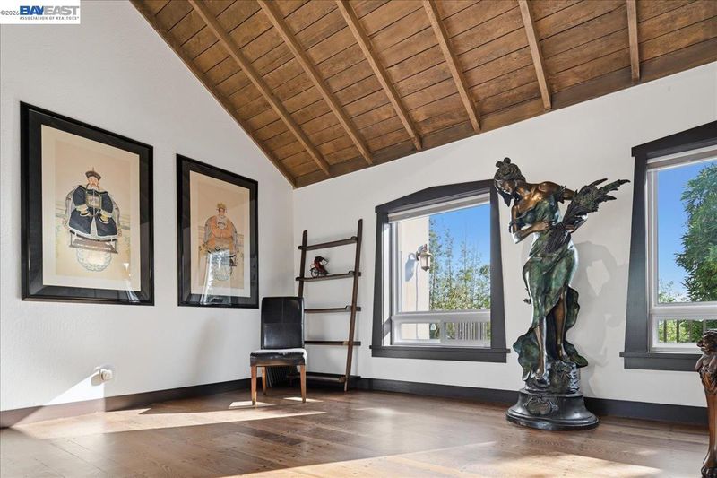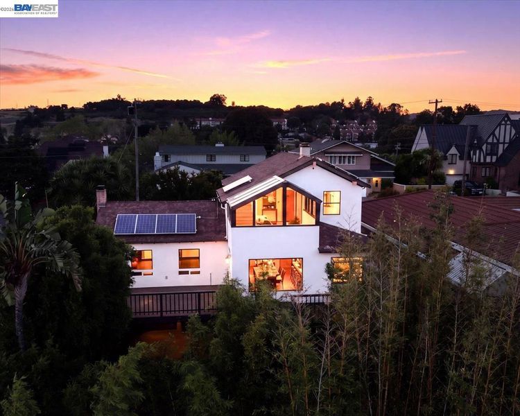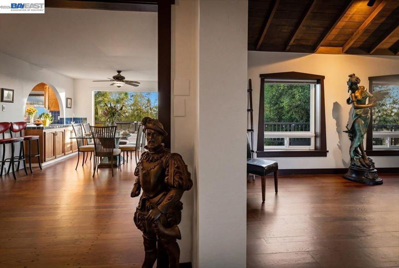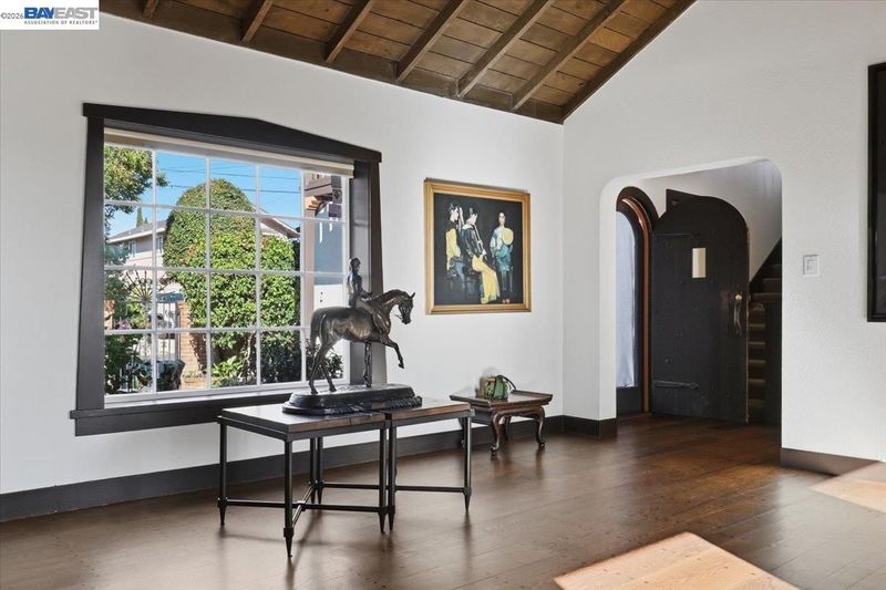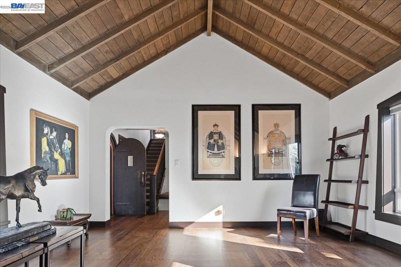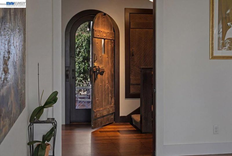 The historic Prospect Hill has been known as the "Nob Hill of Hayward" with its classic Old Hollywood homes of the last century, modernized for today's living. This best-kept secret of a neighborhood offers a sanctuary in the middle of urban suburbia with a Walk Score* of 80/100 and considered "Very Walkable" with a 10 minute stroll to the World Famous Turf Club and Snappy's Cafe, an 8-minute stroll to City Sports, a 14-minute stroll to city hall and the weekend farmer's market, and a 12-minute stroll to the downtown movie theatre (per WalkScore) and other bars, restaurants and small business amenities. The unique structure at 22111 Prospect Street is part classic, part modern, part rustic with 4-bedrooms over 2400+ sq. ft. on three levels, showing immense pride of ownership. Medieval-style arched doors, cathedral ceiling over a wood-burning brick fireplace, glass-vaulted ceiling in the sun/moon-room with views, freshly refinished random plank hardwood floors, Guinevere balcony off an upstairs bedroom with a peek-a-boo view of San Francisco overlooking the enclosed brick & tile enclosed courtyard, walk-in closets in 3 of the 4 bedrooms, cobalt blue galley kitchen, wet bar, double-level deck, a 3rd bedroom currently used as an art/music studio and a 4th bedroom, both with their own entrances. This eclectic home has added features such as a wine storage closet on the lower level, owned solar, an EV charger plus 220v capacity to add another EV charger, air conditioning, remodeled bathrooms with heated toilet seat/towel bars & heated tile floor, and a mini-bamboo forest in the "wealth" section, plus occasional wildlife (deer, squirrels, hummingbirds, owls, etc.) Blocks from the cinema, live theater, live music, grocery, coffee, restaurants, city hall, post office, farmers market, library & BART. Romance and castle intrigue on a manageable scale, this gallant historic Prospect Hill spread has hosted wedding receptions, civic/charitable events, National Night Out and other unique gatherings. The Historic Prospect Hill Neighborhood has been home to city leaders including mayors, city council members, commissioners and prominent business people. Prospect Hill has kept its tradition of respecting history and has angled to be the first neighborhood designated historic in the City of Hayward. More photos/video soon! *Source: WalkScore