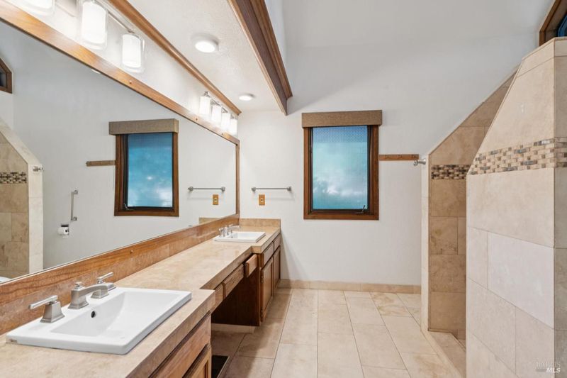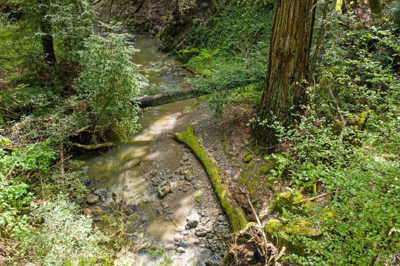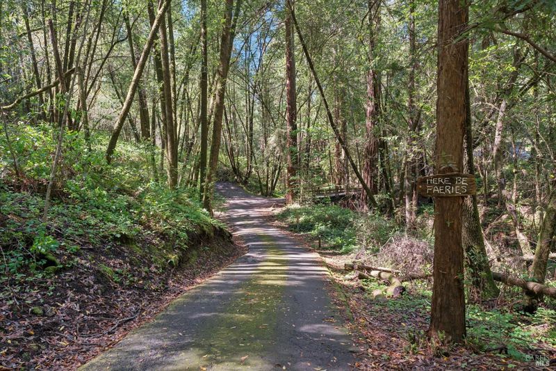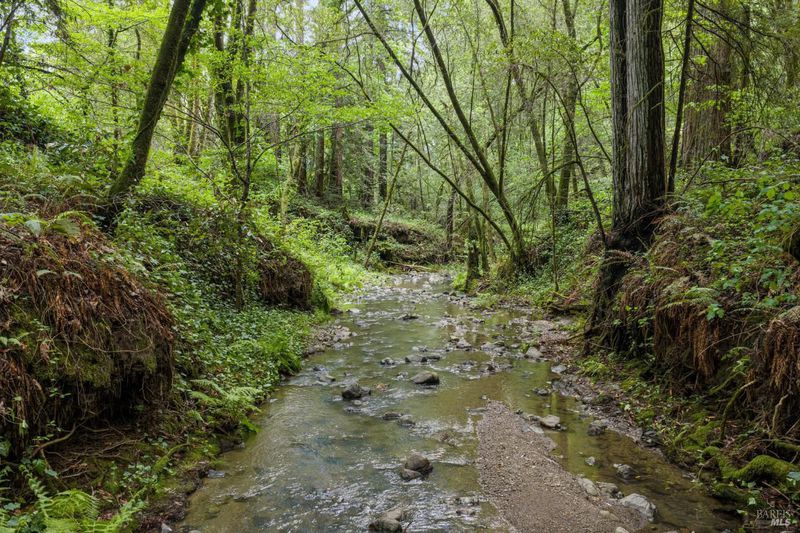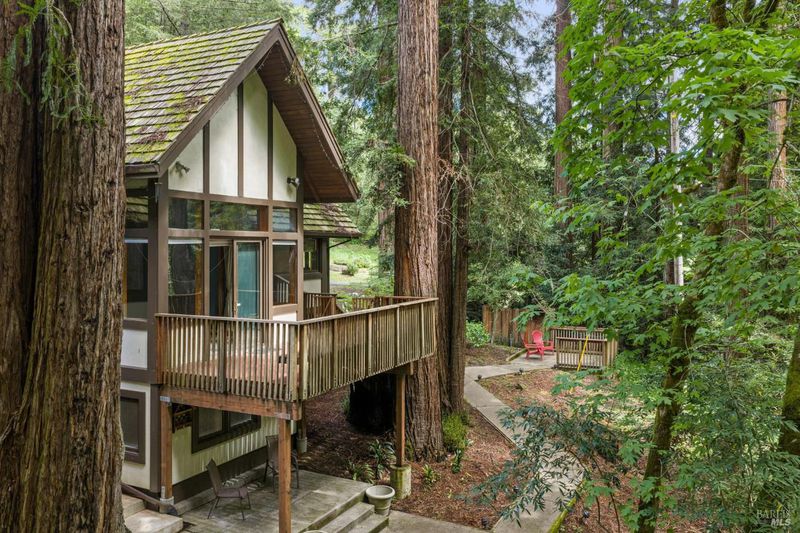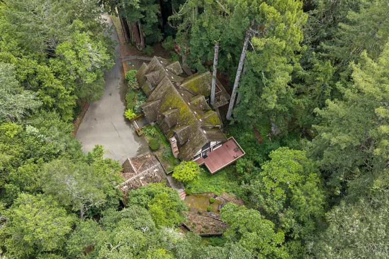 Set on over four acres of peaceful West County landscape, this beautiful 5-bedroom, 4.5-bath Tudor Revival home offers a rare combination of privacy, natural beauty, and flexible use. Surrounded by towering redwoods and a year-round creek, the property invites a slower pace of living, with multiple patios and sitting areas designed to take in the sights and sounds of the land. The setting feels both secluded and restorative, creating a true sense of retreat just a short distance from town. The home has previously operated as a bed and breakfast, and its layout thoughtfully supports that history. Three individual guest rooms feature fireplaces and private entrances, offering separation and comfort for visitors, extended family, or potential hosting opportunities. Additional flexibility is found in the studio space above the garage, well suited for creative or private use. The garage itself is currently configured as four office spaces, providing immediate functionality for work-from-home or professional needs, with the ability to convert back to traditional garage use if desired. Blending natural surroundings with a versatile layout, this property is well suited for a full-time residence, second home, or a buyer seeking a space that supports both living and hosting. A rare opportunity to enjoy privacy, presence, and possibility in a truly special West County setting.