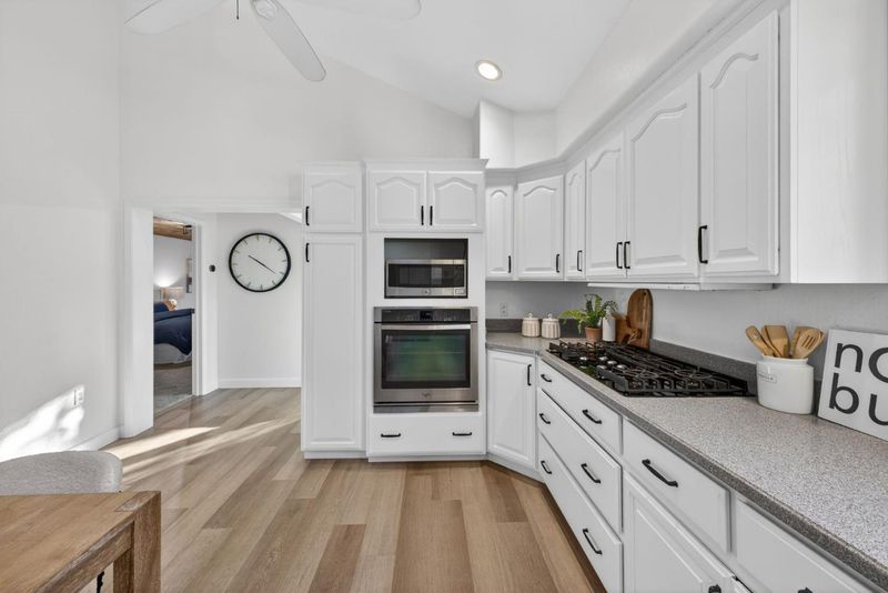 Welcome to 1100 Steinway Avenue. A bright and beautifully updated 4-bed, 2.5-bath Campbell home with 2,219 sq ft of living space, including a versatile cottage. Nestled in a quiet neighborhood with larger lots, this single-level property offers comfort, style, and flexible living options. Inside, you'll find a warm living room with a brick fireplace and wood-burning stove, plus a spacious vaulted family room with French doors opening to the backyard. The updated kitchen features skylights, stainless appliances, and extensive cabinetry with ample storage perfect for everyday use and casual dining. The primary suite feels inviting and private with its wood-plank ceiling, generous layout, and refreshed en-suite bath. Three additional bedrooms, a modern hall bath, and two comfortable living areas complete the main home. The attached cottage adds tremendous value ideal for a home office, guest space, gym, or studio. The backyard is a true highlight, offering multiple patio areas, lush landscaping, and lots of usable space to relax or entertain. Quick access to Downtown Campbell, Los Gatos, and Saratoga and close to parks, shopping, and major conveniences this home blends space, comfort, and an exceptional South Bay lifestyle. Campbell Schools!