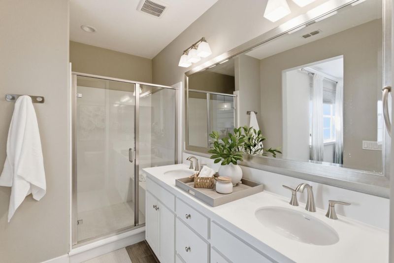 - Double Sinks, Half on Ground Floor, Primary - Stall Shower(s), Shower and Tub, Stone, Tile, Updated Bath