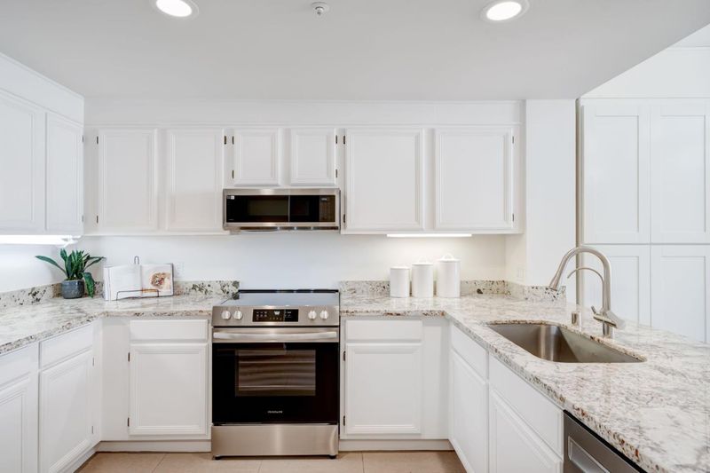 Beautifully updated end-unit condo in the desirable Domizile community featuring a bright, open floor plan with abundant natural light. The spacious living room with cozy fireplace opens to a sunny balcony overlooking a serene, lush courtyard. The open kitchen offers ample cabinetry and counter space, ideal for everyday living and entertaining. The spacious primary suite includes double closets and a versatile nook, perfect for a home office or sitting area. Additional features include in-unit laundry and central heating & A/C. Recent updates include freshly painted kitchen cabinetry and bathroom vanities, new interior paint, new carpet, updated HVAC, and newer appliances (under 2 years). Residents enjoy a secure, gated community with elevators and amenities including a pool, gym, sauna, and steam room. Includes assigned underground parking, storage, ample guest/unassigned parking, and concierge service six days a week. In a highly sought-after location just steps from The Village at San Antonio Center with Whole Foods, Trader Joes, shopping, dining, and fitness. Top-rated Los Altos schools (Almond, Egan, Los Altos High). Close to downtown Mountain View, downtown Los Altos, Google, VTA, Caltrain, and major commute routes.