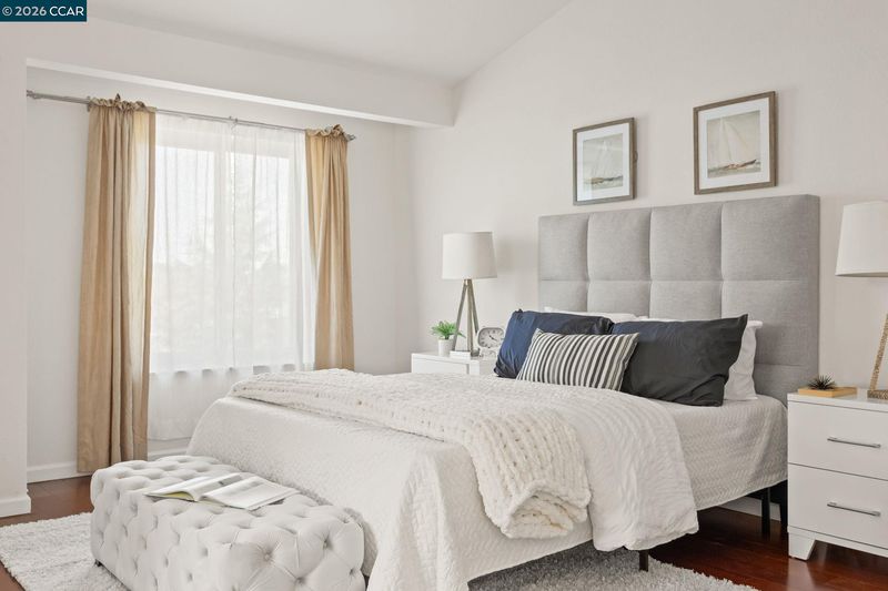 Elevated on a premium corner lot, this stunning 1,883 sq ft residence blends timeless elegance with thoughtful modern upgrades. Rich Brazilian Cherry hardwood floors flow throughout the main living areas, creating warmth and sophistication. The open-concept kitchen and family room offer seamless entertaining, while a formal dining room and separate living room provide refined gathering spaces. The private upstairs primary suite is a true retreat and complemented by a charming reading nook at the top of the stairs. Both bathrooms have been beautifully remodeled with contemporary finishes. Recent improvements include fresh exterior paint (November 2024), interior paint (November 2025), Anderson upper windows, a newer HVAC system (approximately 10 years old), and 12 owned solar panels (6 years old) for energy efficiency. Step outside to a low-maintenance backyard oasis featuring mature pear, orange, apple, and peach trees, an Alumawood pergola and patio cover, and partially obstructed river views. The side yard offers dedicated RV parking with three GFI electrical outlets—perfect for recreational vehicles or additional projects. This exceptional property offers privacy, elegance, and modern efficiency—all in a prime elevated setting.